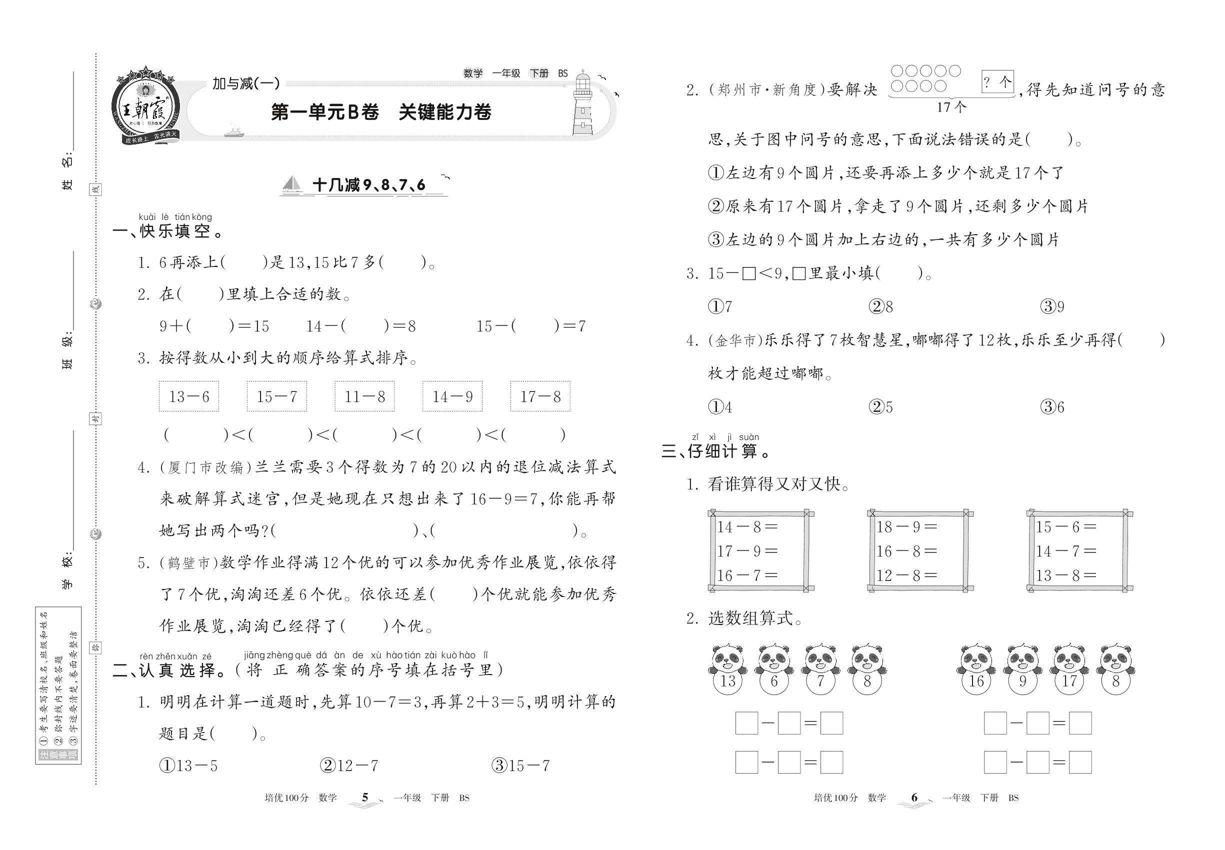 2022下册一年级数学北师版 第一单元B卷 关键能力卷
