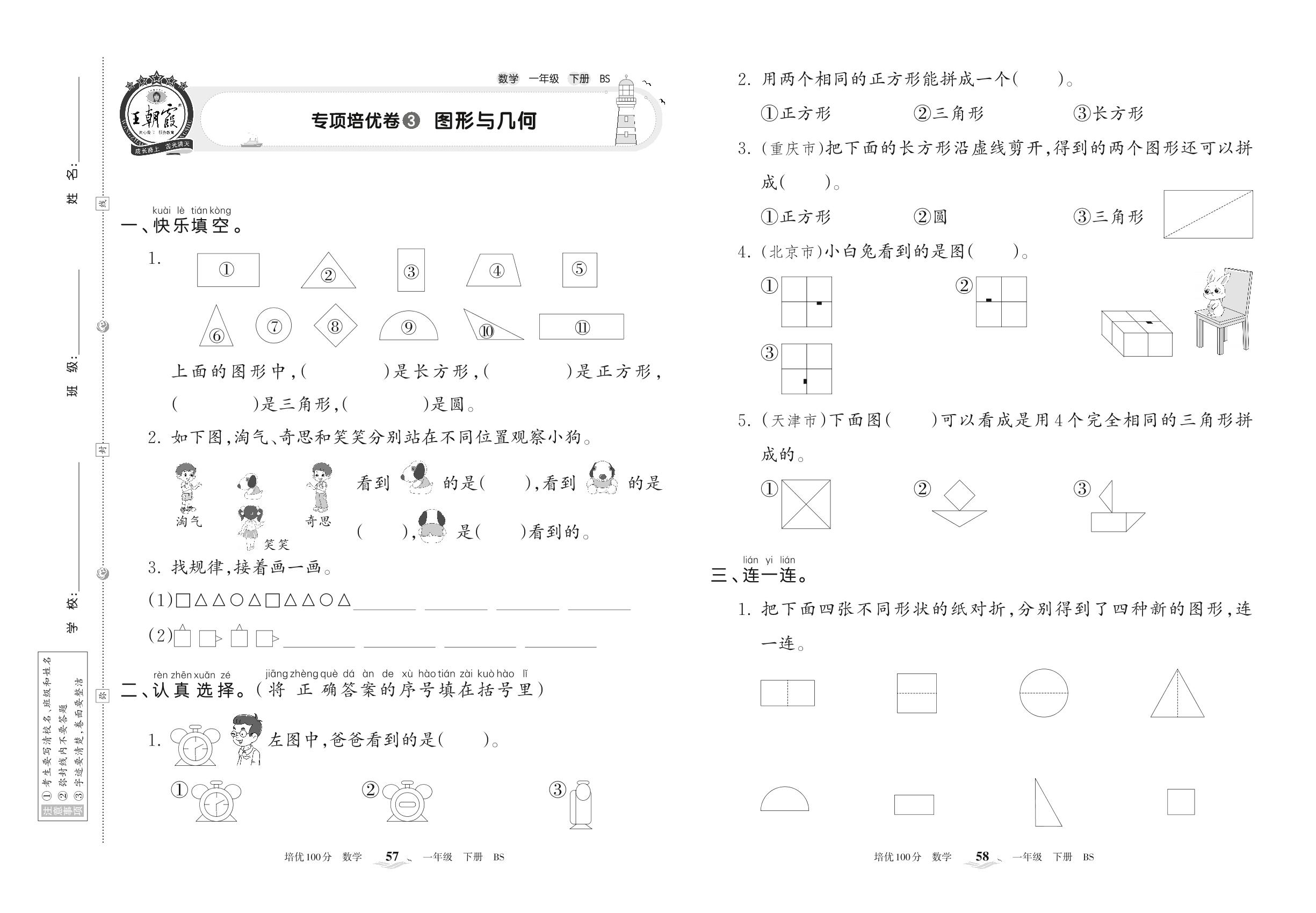 2022下册一年级数学北师版 专项培优卷3 图形与几何
