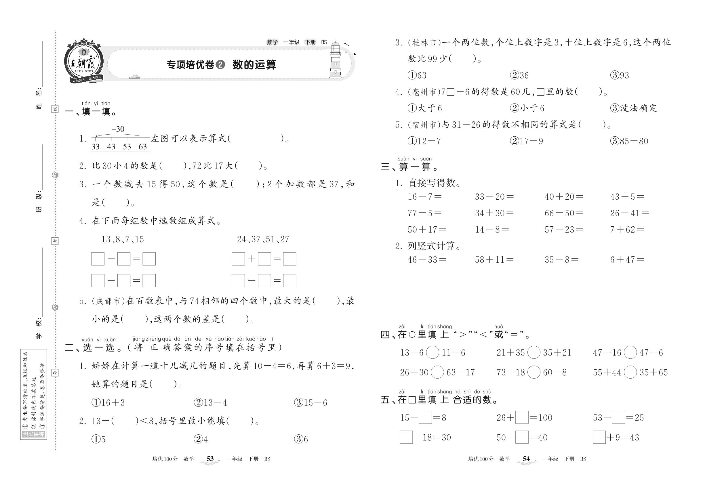 2022下册一年级数学北师版 专项培优卷2 数的运算