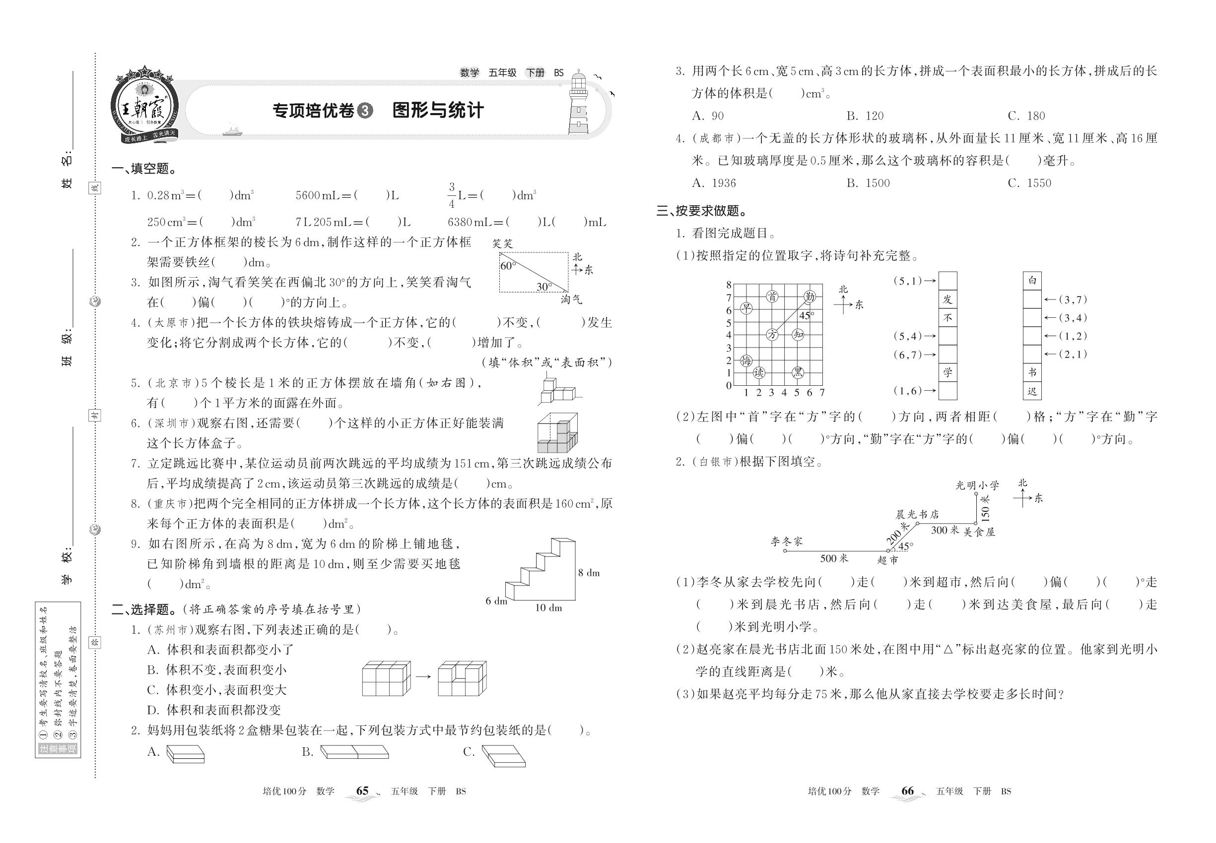 2022下册五年级数学北师版 专项培优卷3 图形与统计