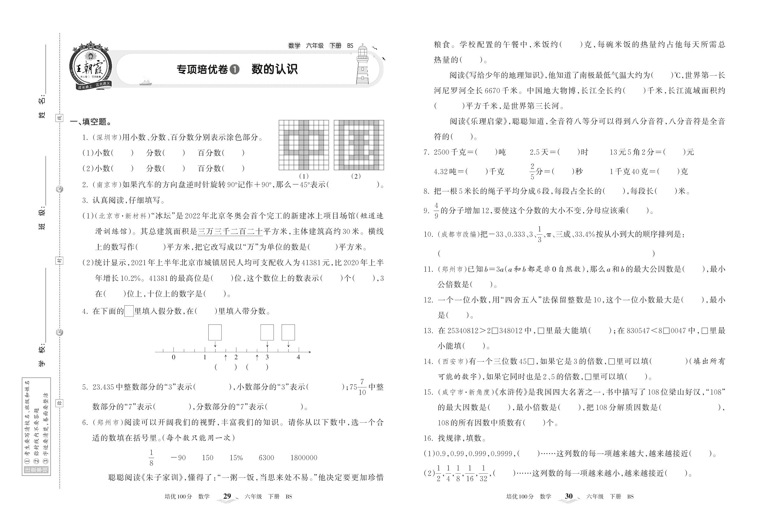2022下册六年级数学北师版 专项培优卷1 数的认识