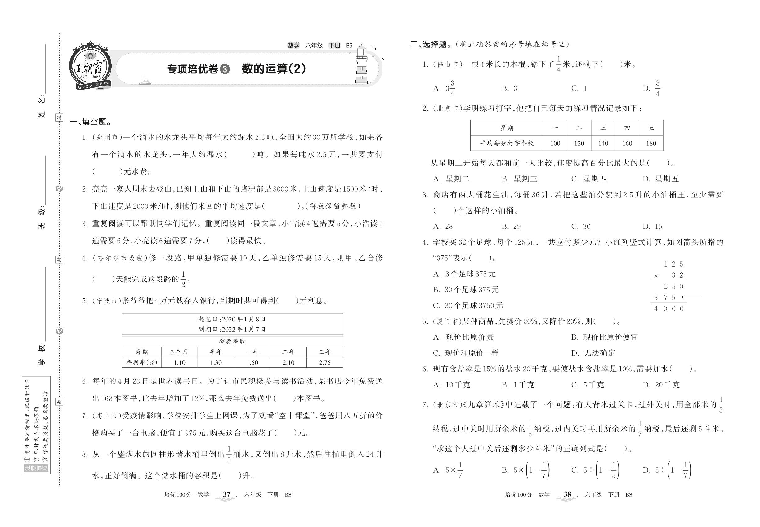 2022下册六年级数学北师版 专项培优卷3 数的运算(2)