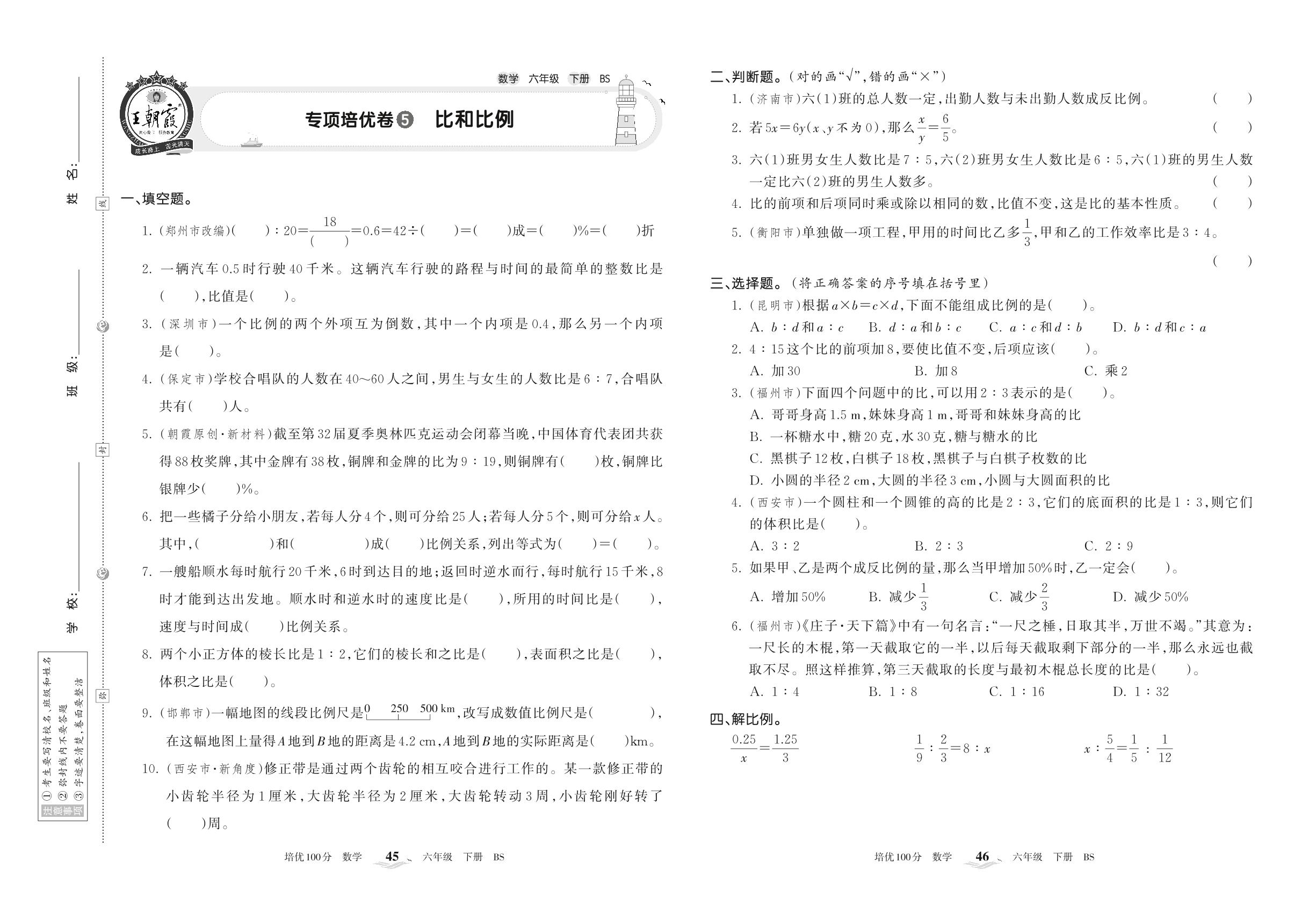 2022下册六年级数学北师版 专项培优卷5 比和比例