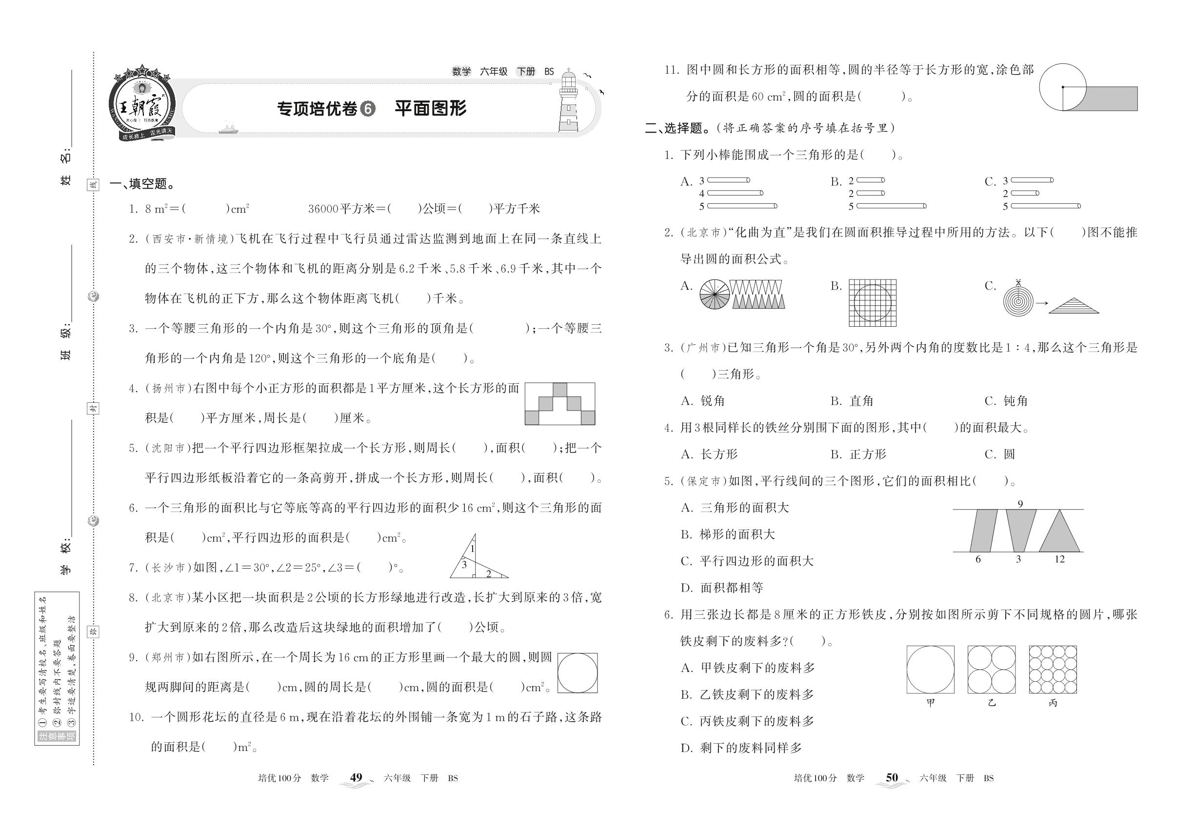 2022下册六年级数学北师版 专项培优卷6 平面图形