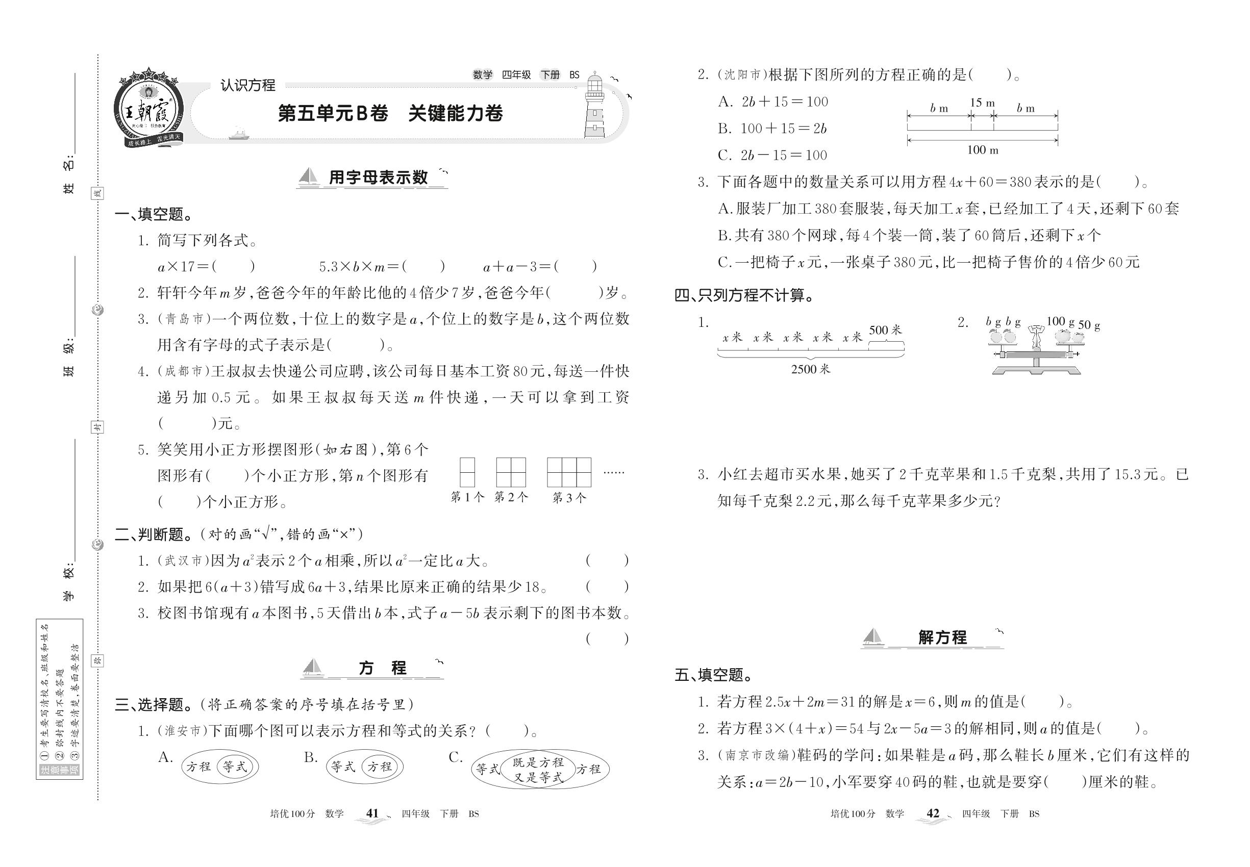 2022下册四年级数学北师版 第五单元B卷 关键能力卷