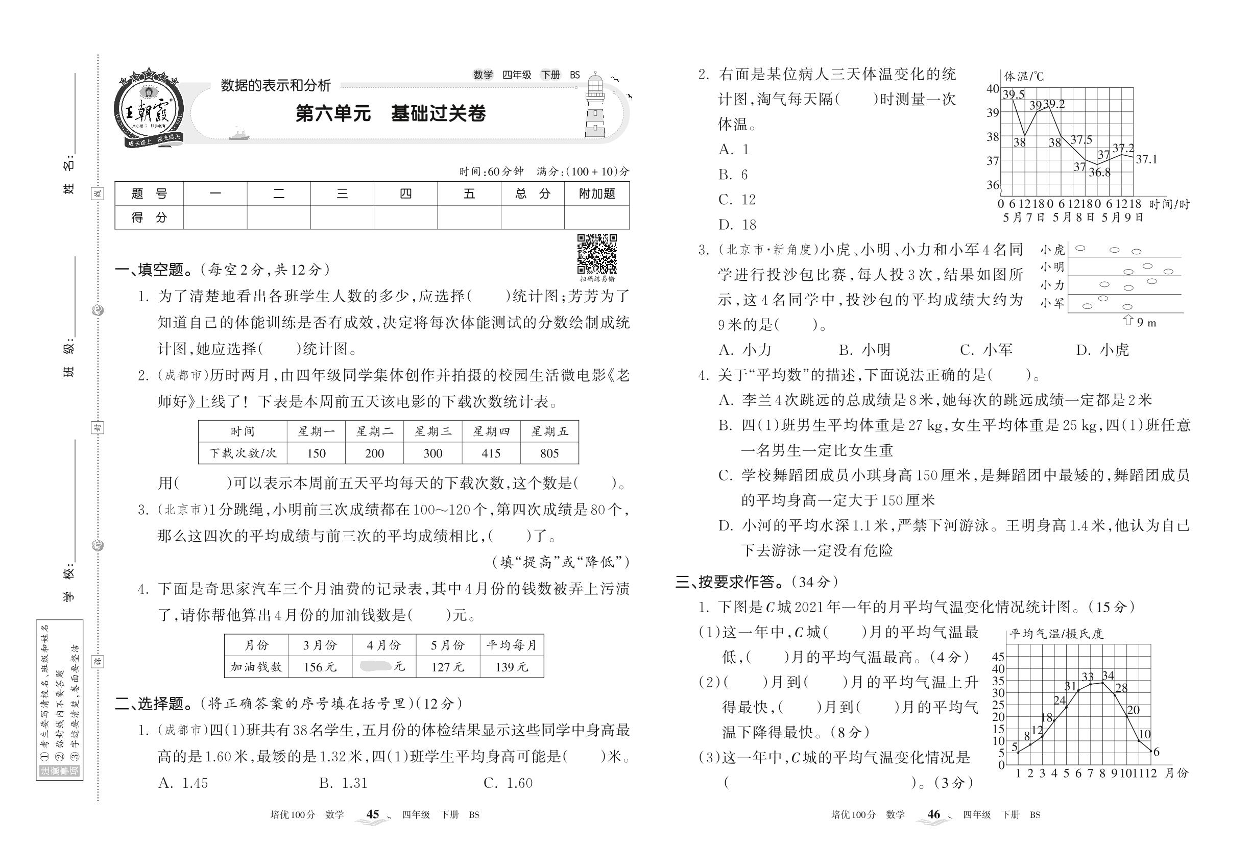 2022下册四年级数学北师版 第六单元 基础过关卷