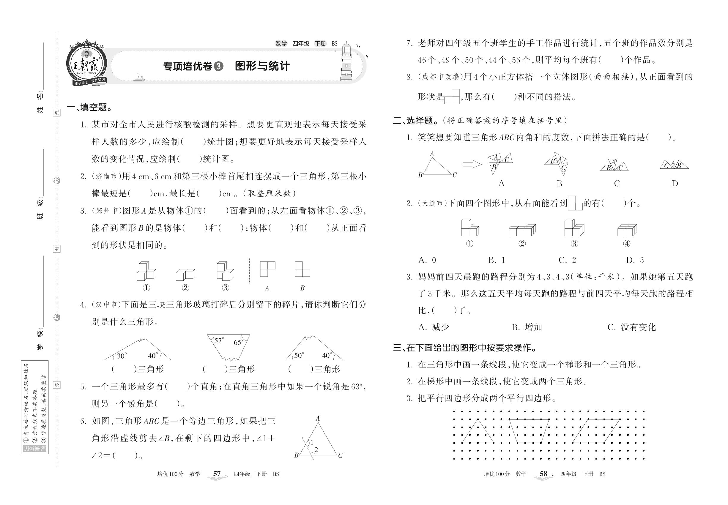 2022下册四年级数学北师版 专项培优卷3 图形与统计