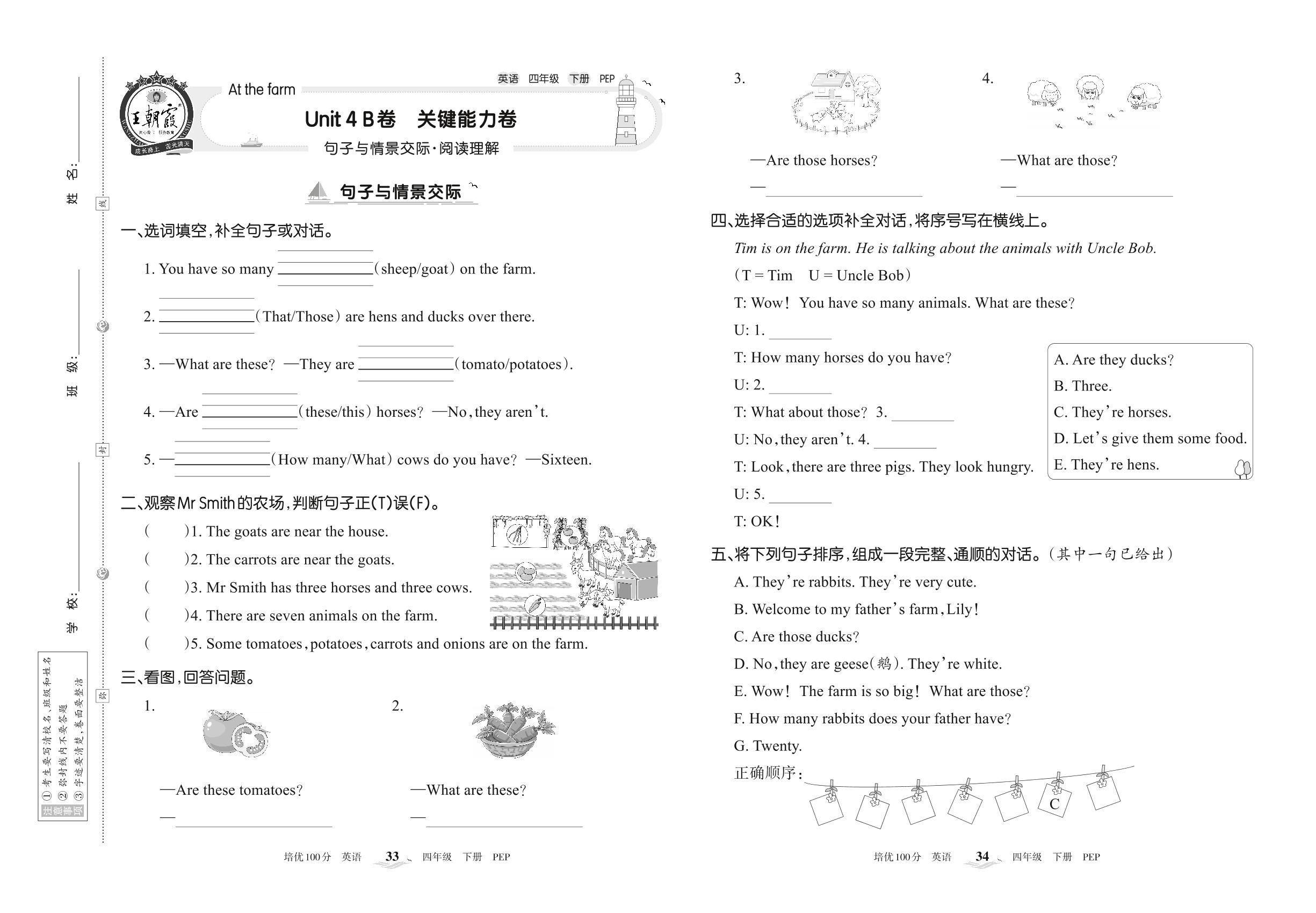 2022下册四年级英语人教PEP版 Unit 4 B卷 关键能力卷