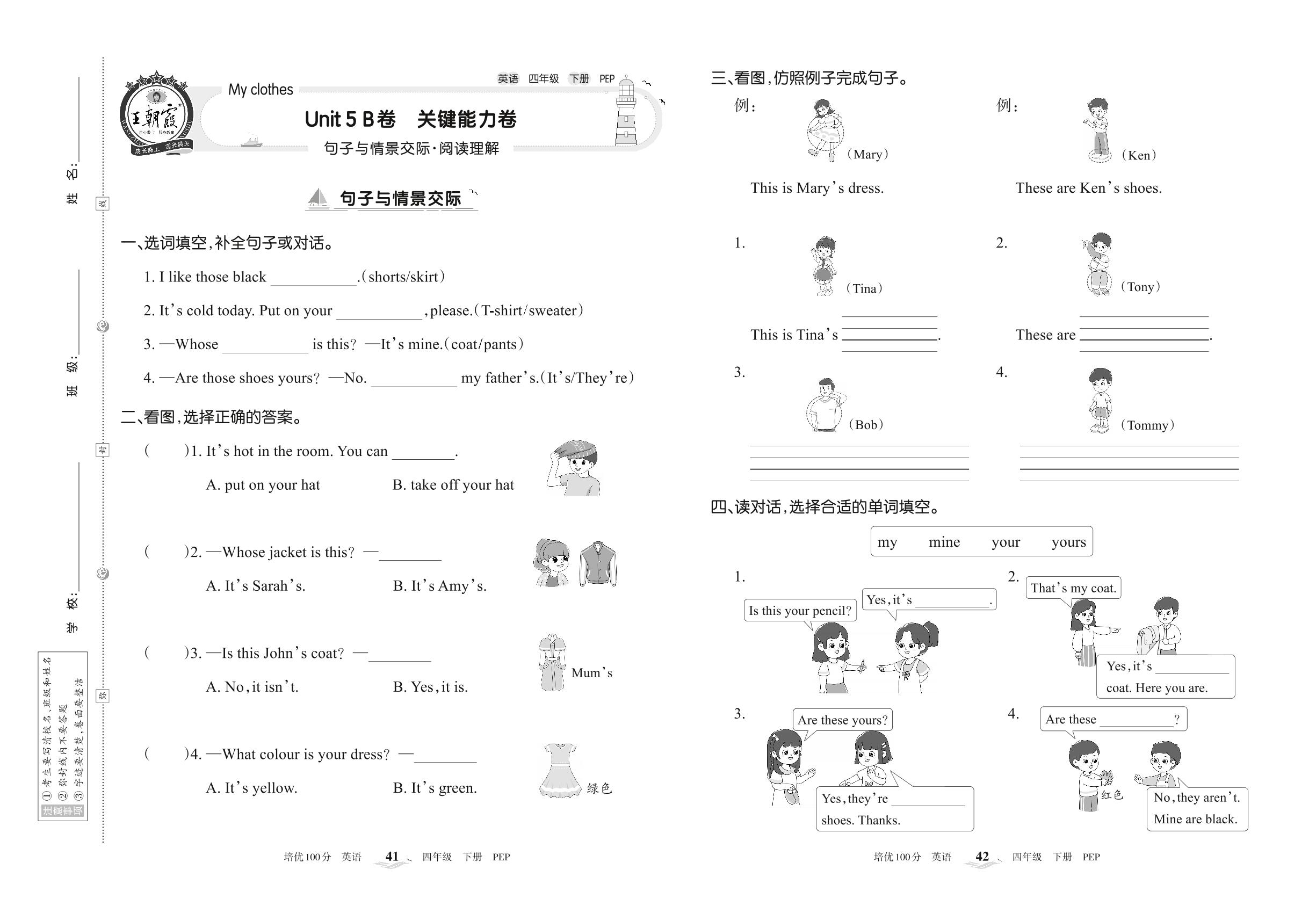 2022下册四年级英语人教PEP版 Unit 5 B卷 关键能力卷