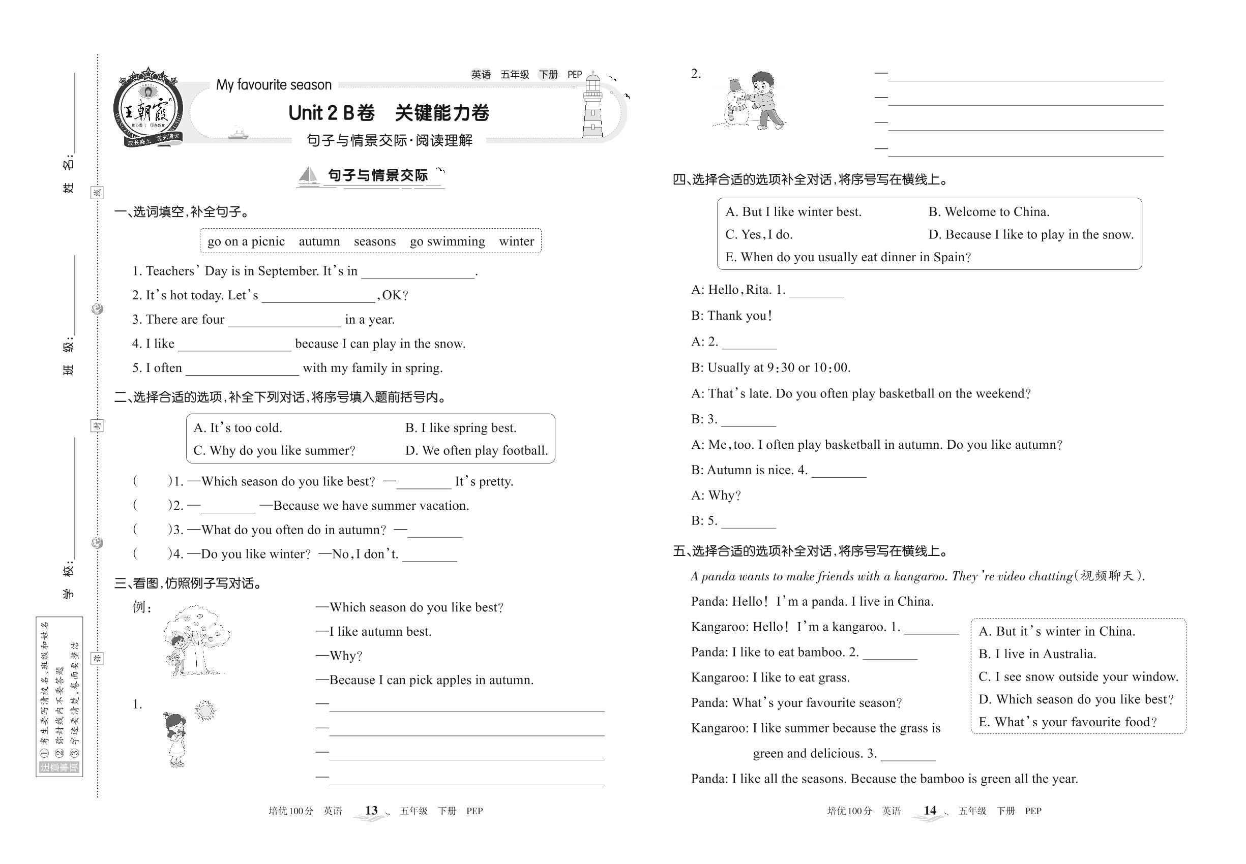 2022下册五年级英语人教PEP版 Unit 2 B卷 关键能力卷