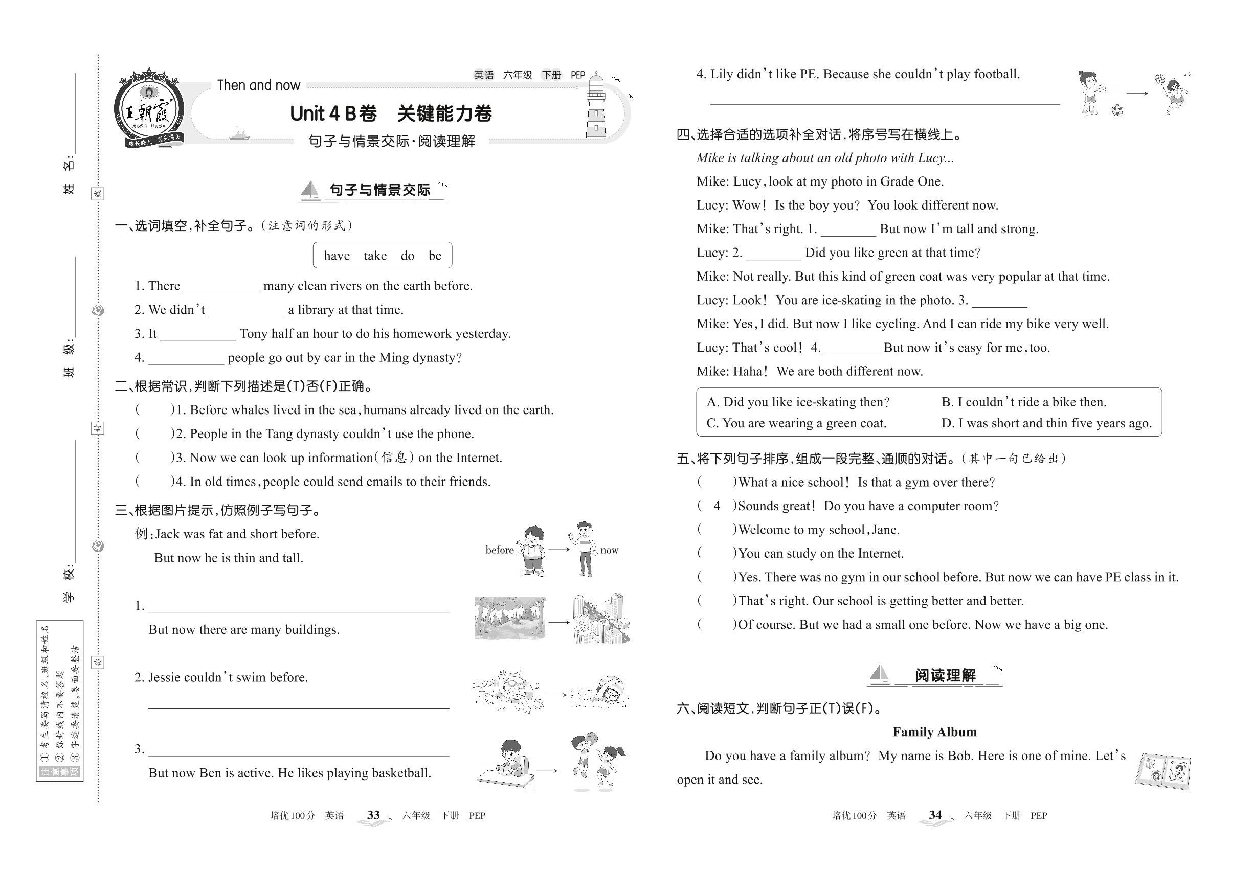 2022下册六年级英语人教PEP版 Unit 4 B卷 关键能力卷