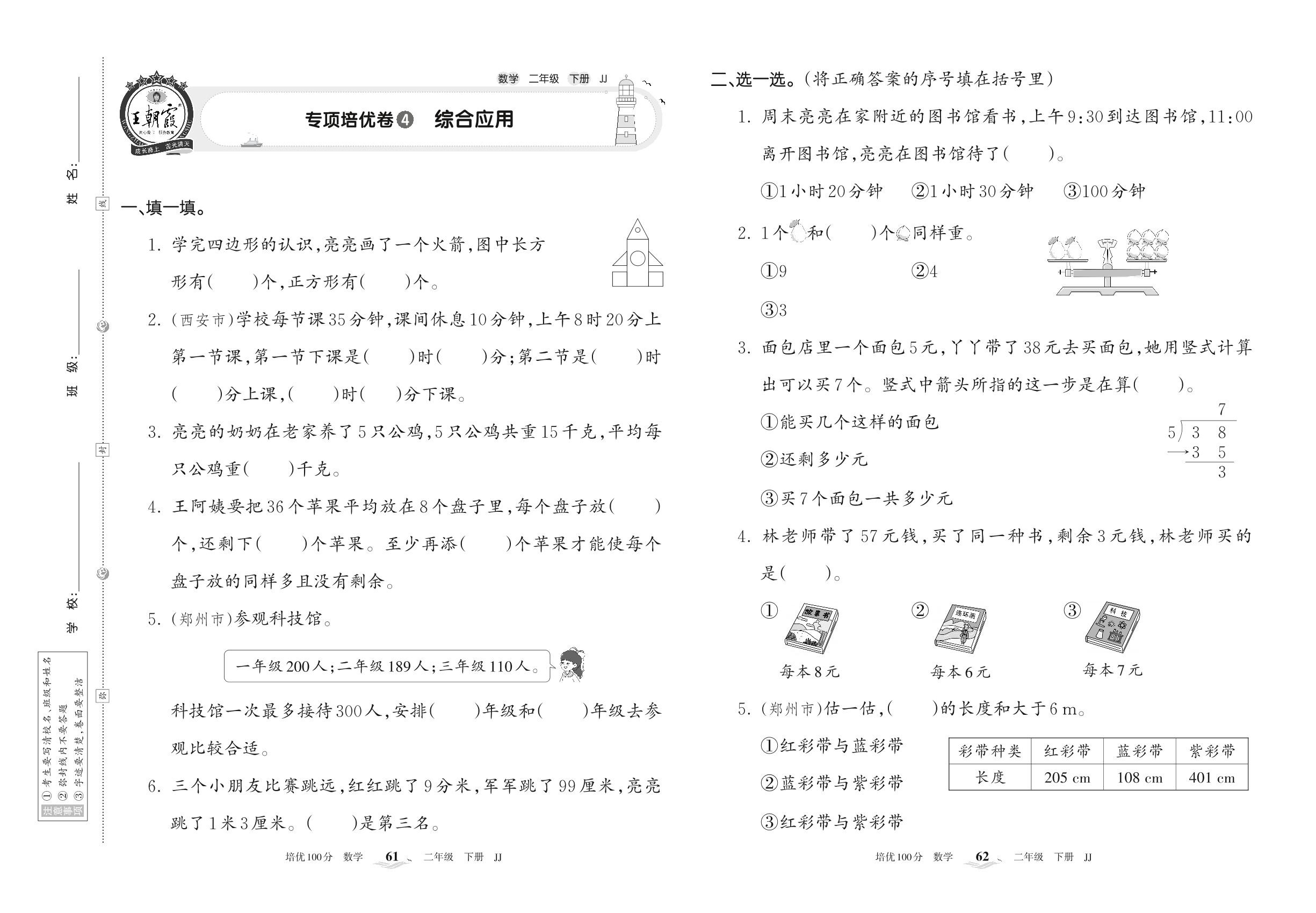 2022下册二年级数学冀教版 专项培优卷4 综合应用