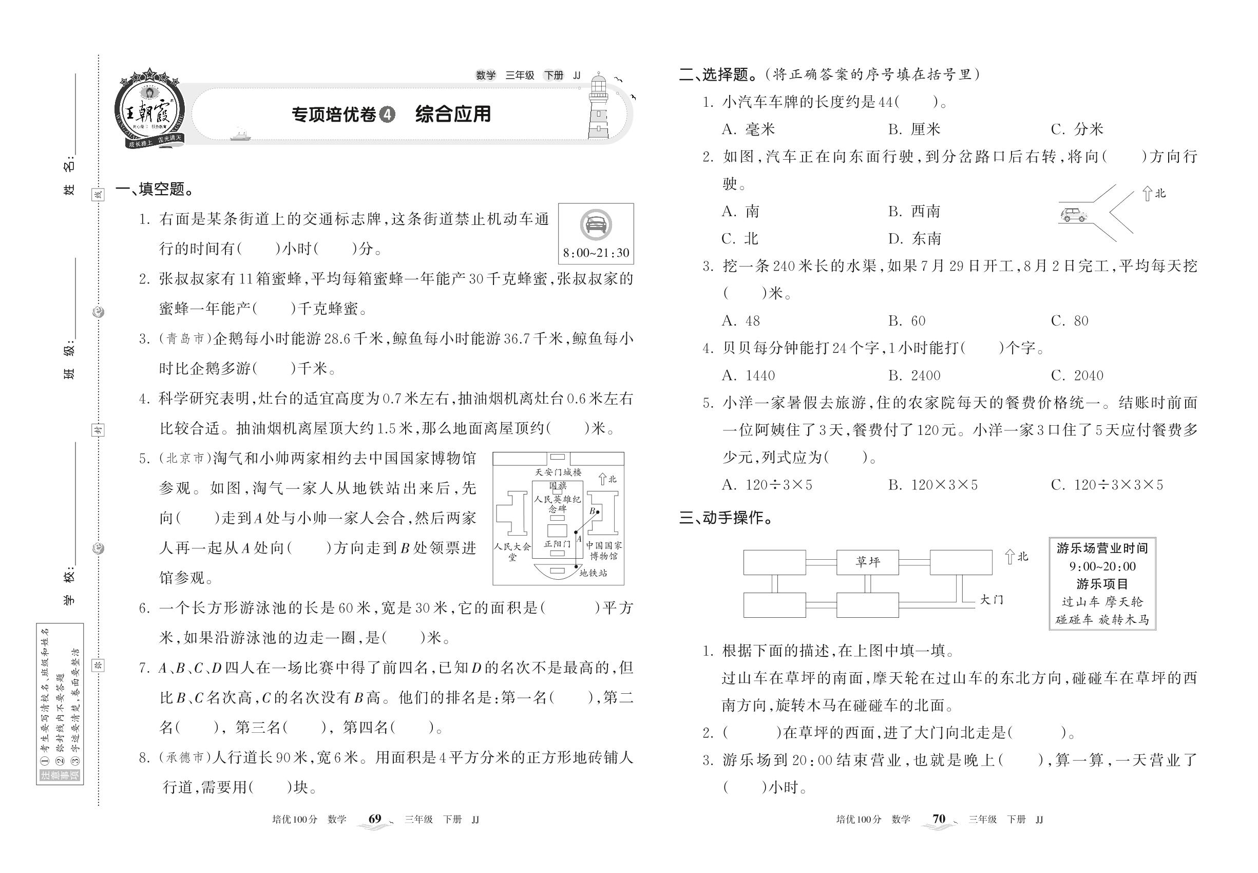 2022下册三年级数学冀教版 专项培优卷4 综合应用