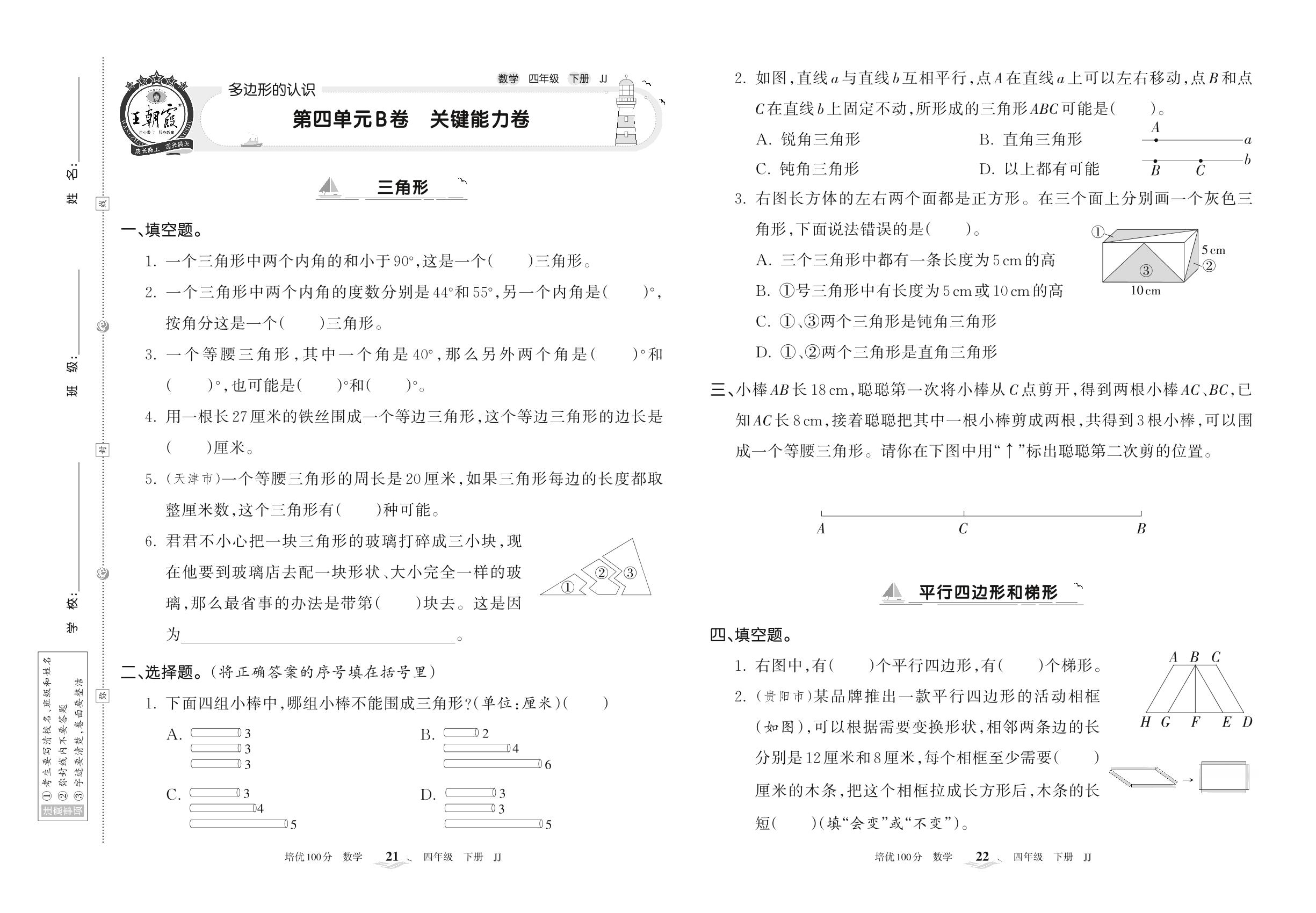 2022下册四年级数学冀教版 第四单元B卷 关键能力卷