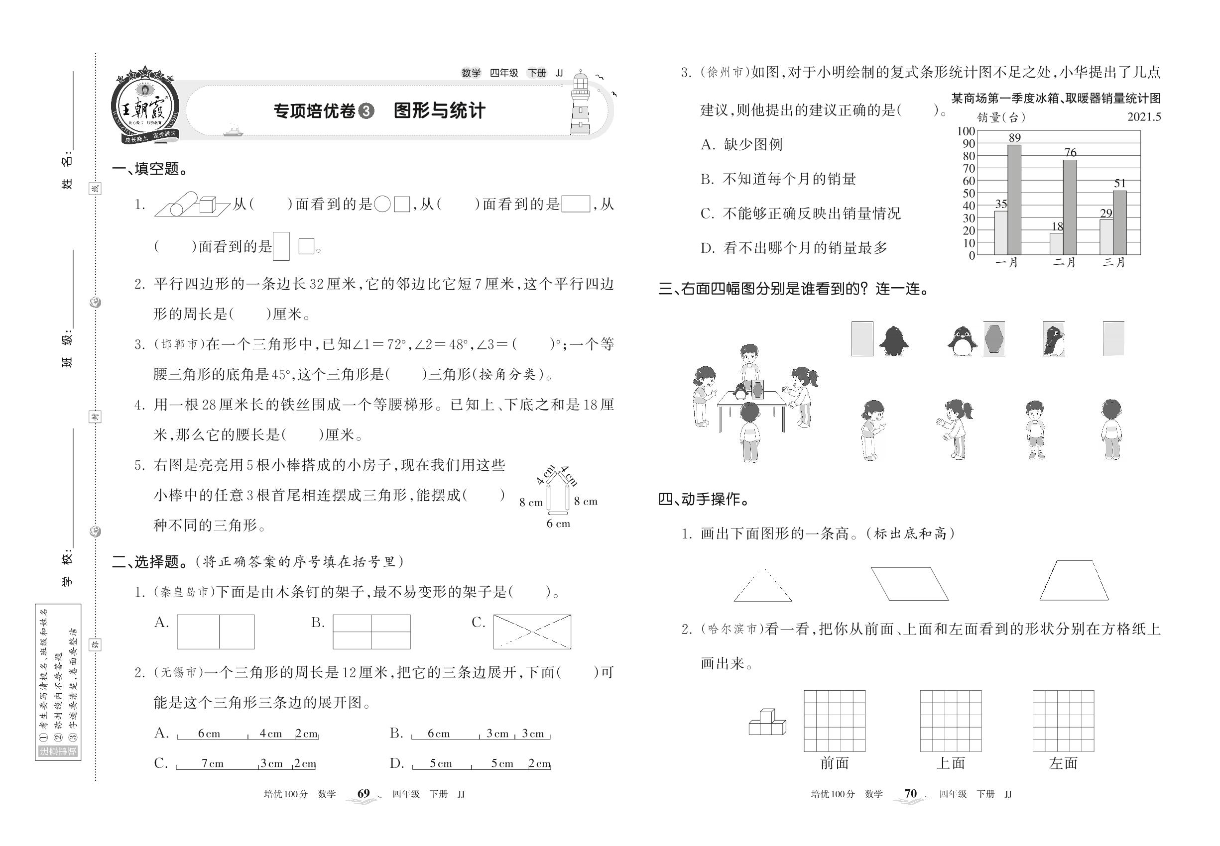 2022下册四年级数学冀教版 专项培优卷3 图形与统计