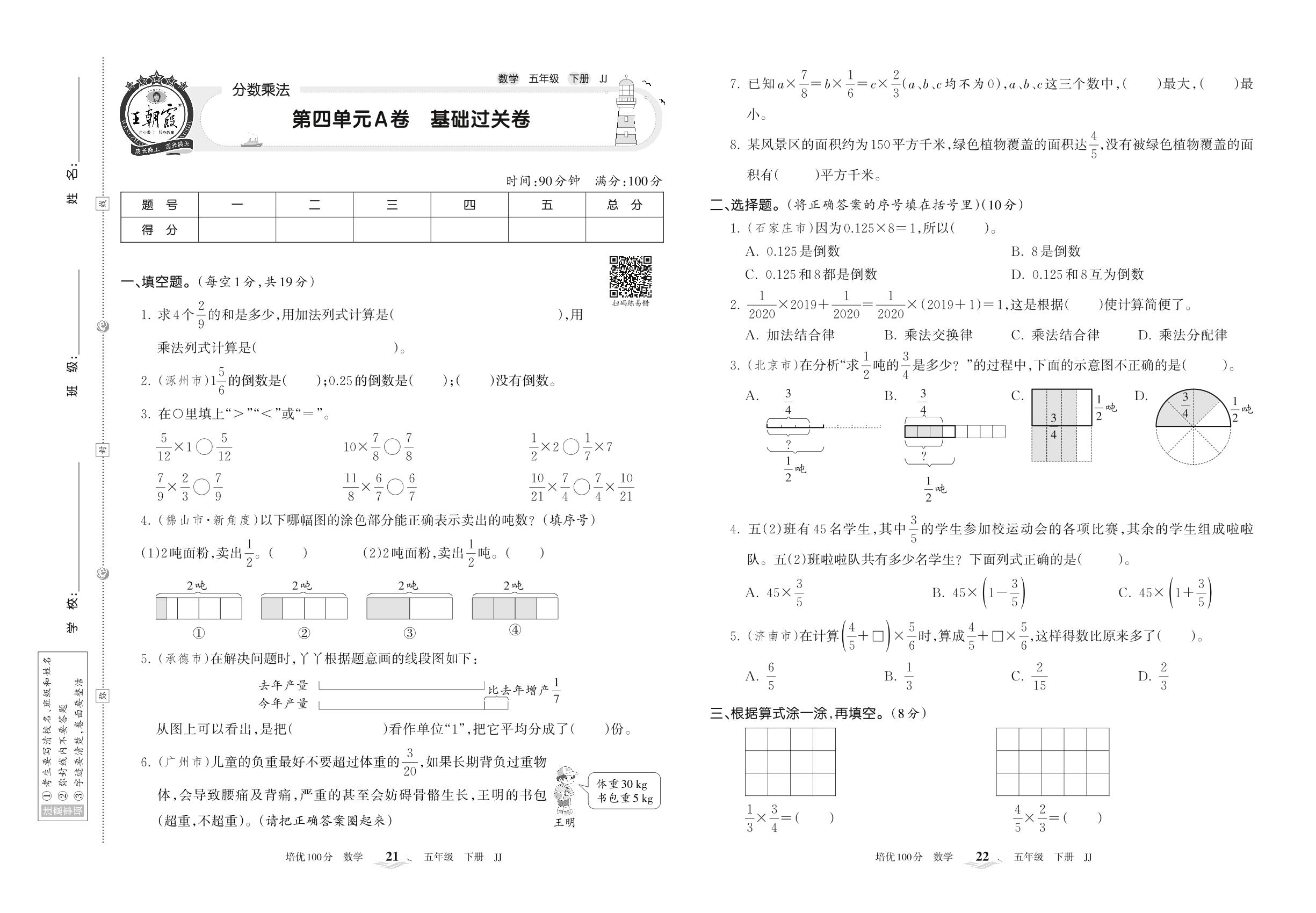 2022下册五年级数学冀教版 第四单元A卷 基础过关卷