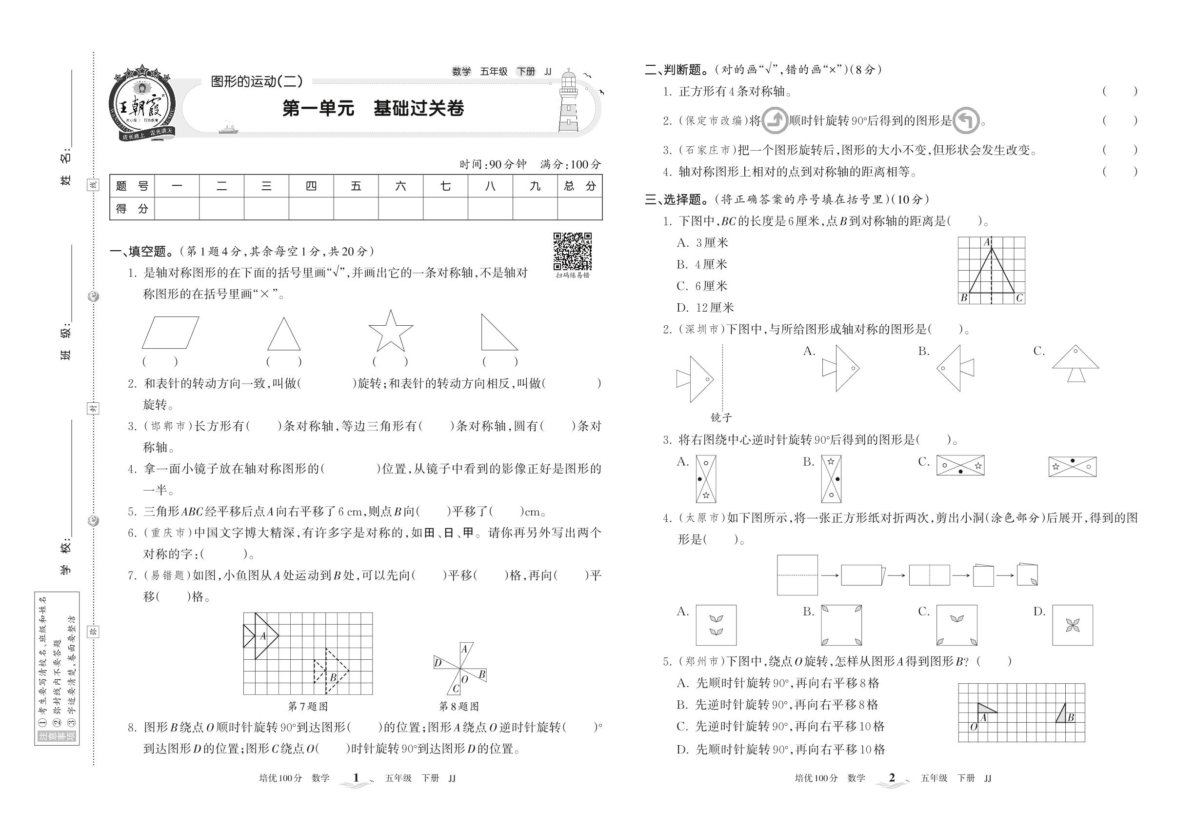 2022下册五年级数学冀教版 第一单元 基础过关卷