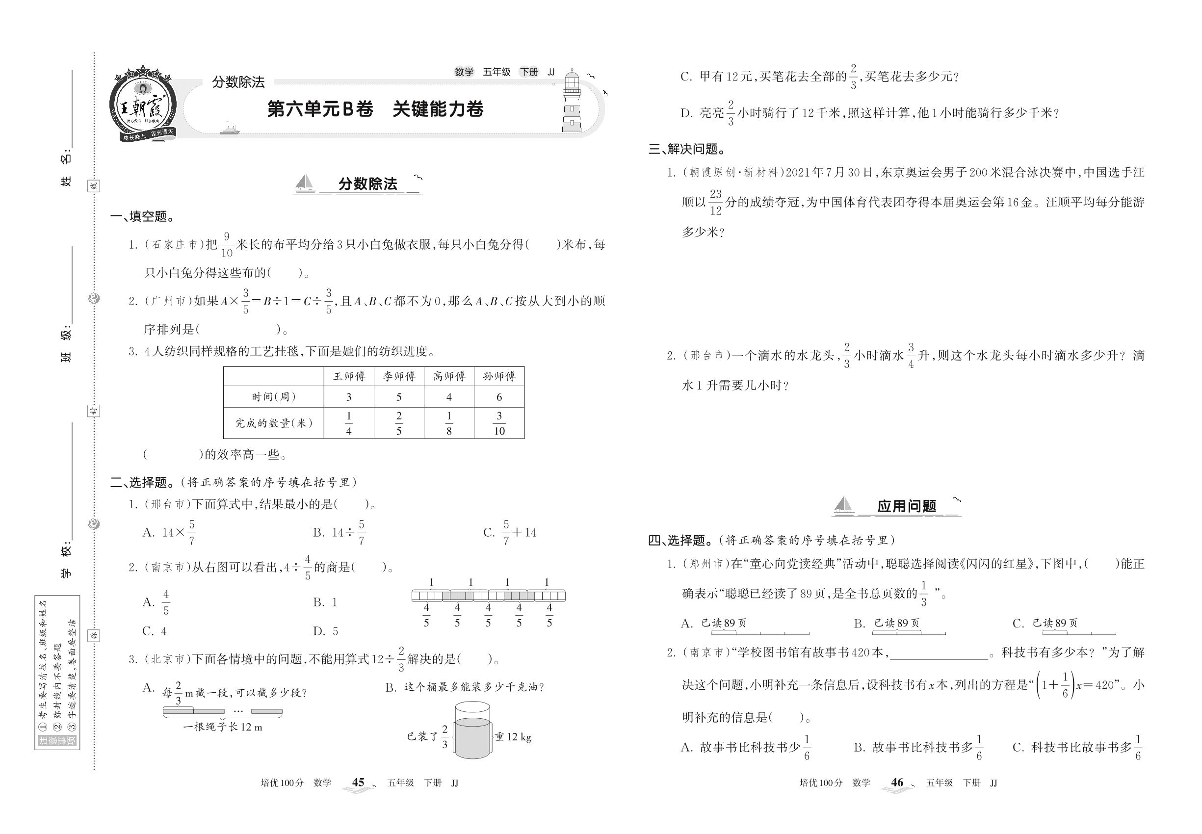 2022下册五年级数学冀教版 第六单元B卷 关键能力卷