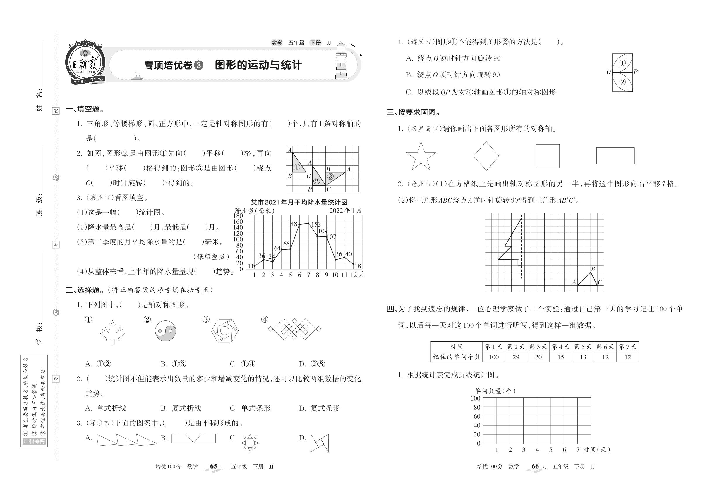 2022下册五年级数学冀教版 专项培优卷3 图形的运动与统计