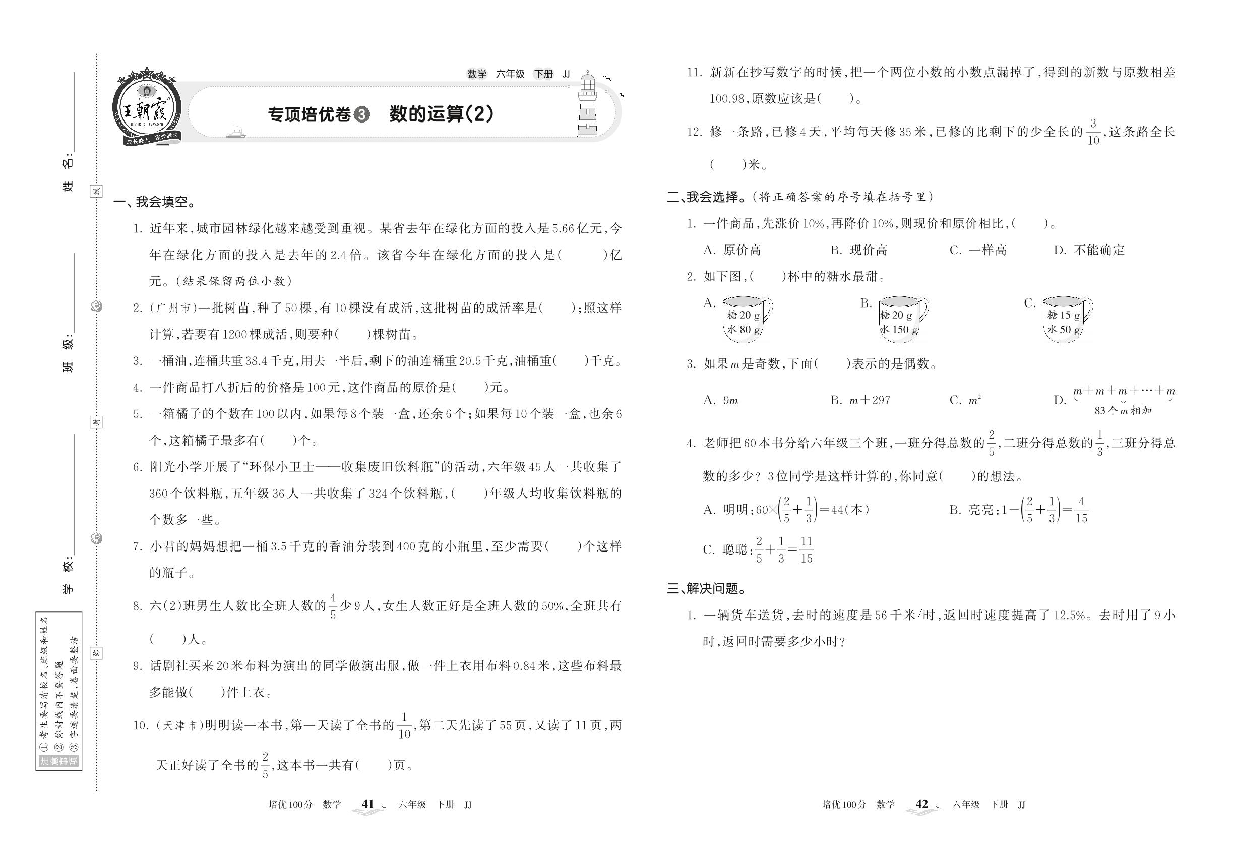 2022下册六年级数学冀教版 专项培优卷3 数的运算(2)
