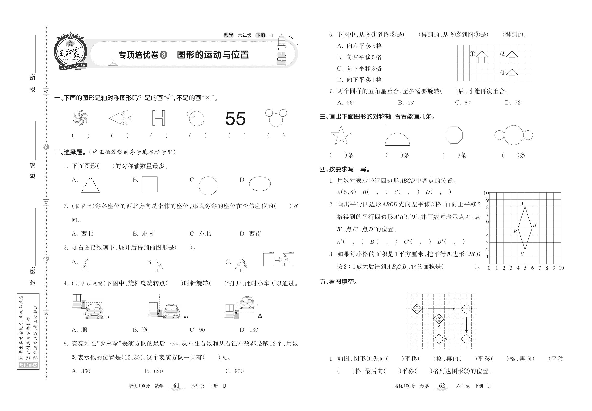 2022下册六年级数学冀教版 专项培优卷8 图形的运动与位置