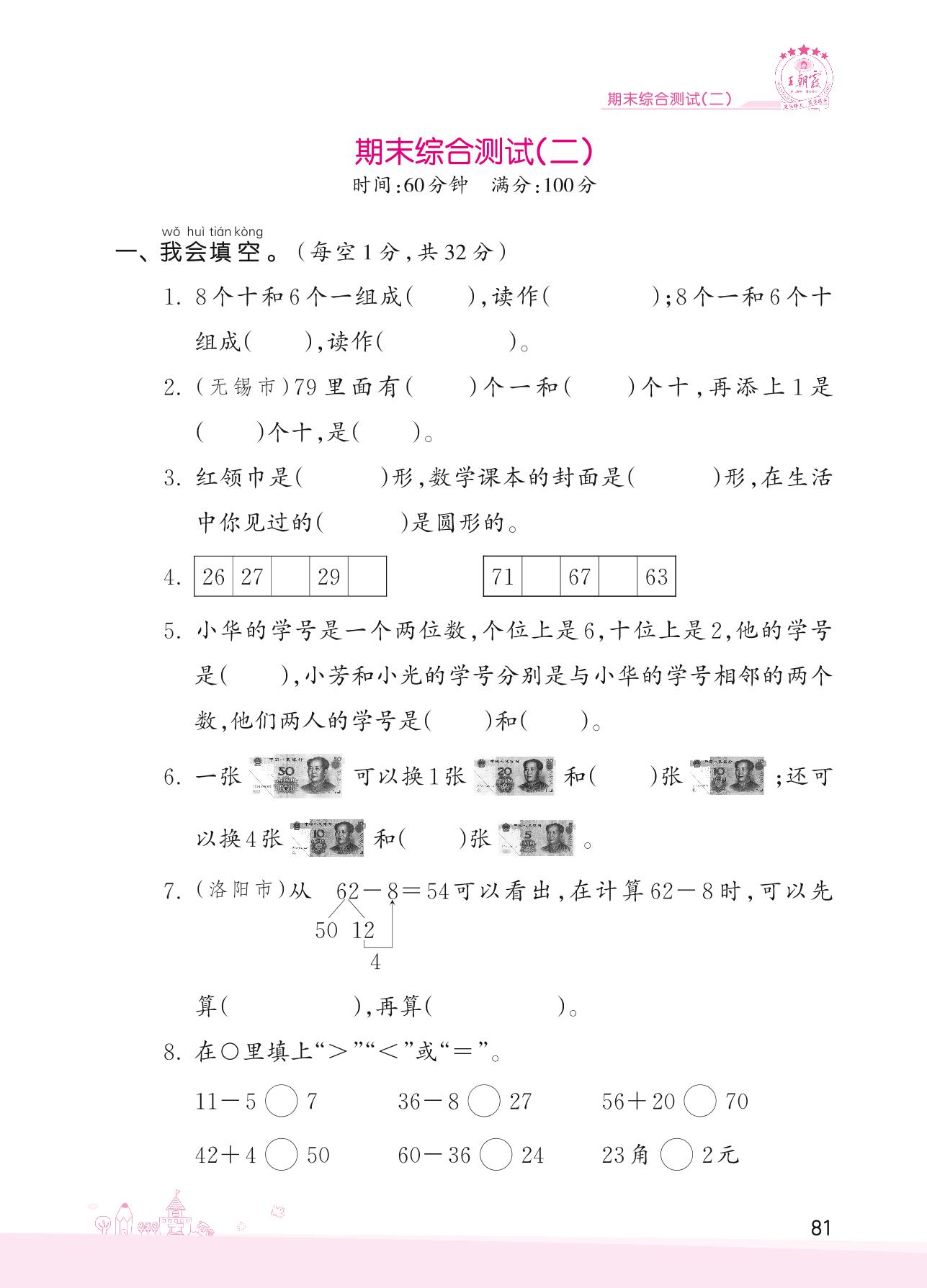一年级数学苏教版下册期末卷