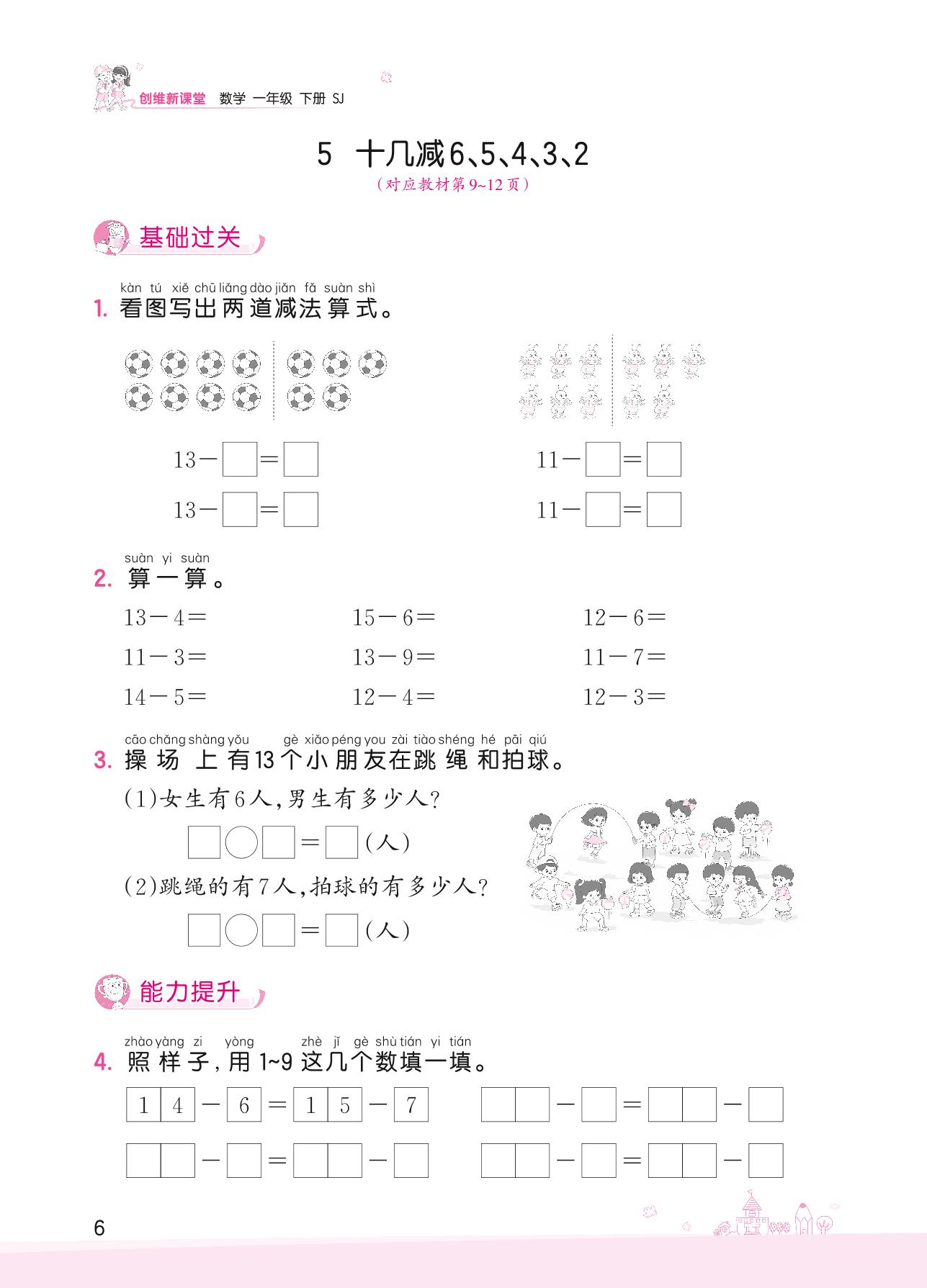 2022下册一年级数学苏教版 一 20以内的退位减法——5 十几减6、5、4、3、2