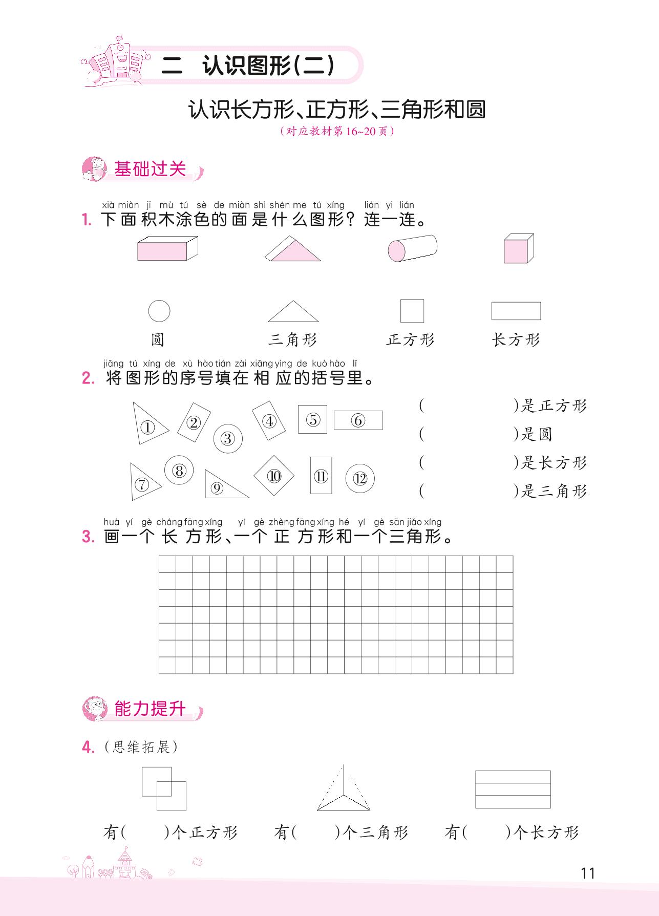 2022下册一年级数学苏教版 二 认识图形(二)——认识长方形、正方形、三角形和圆