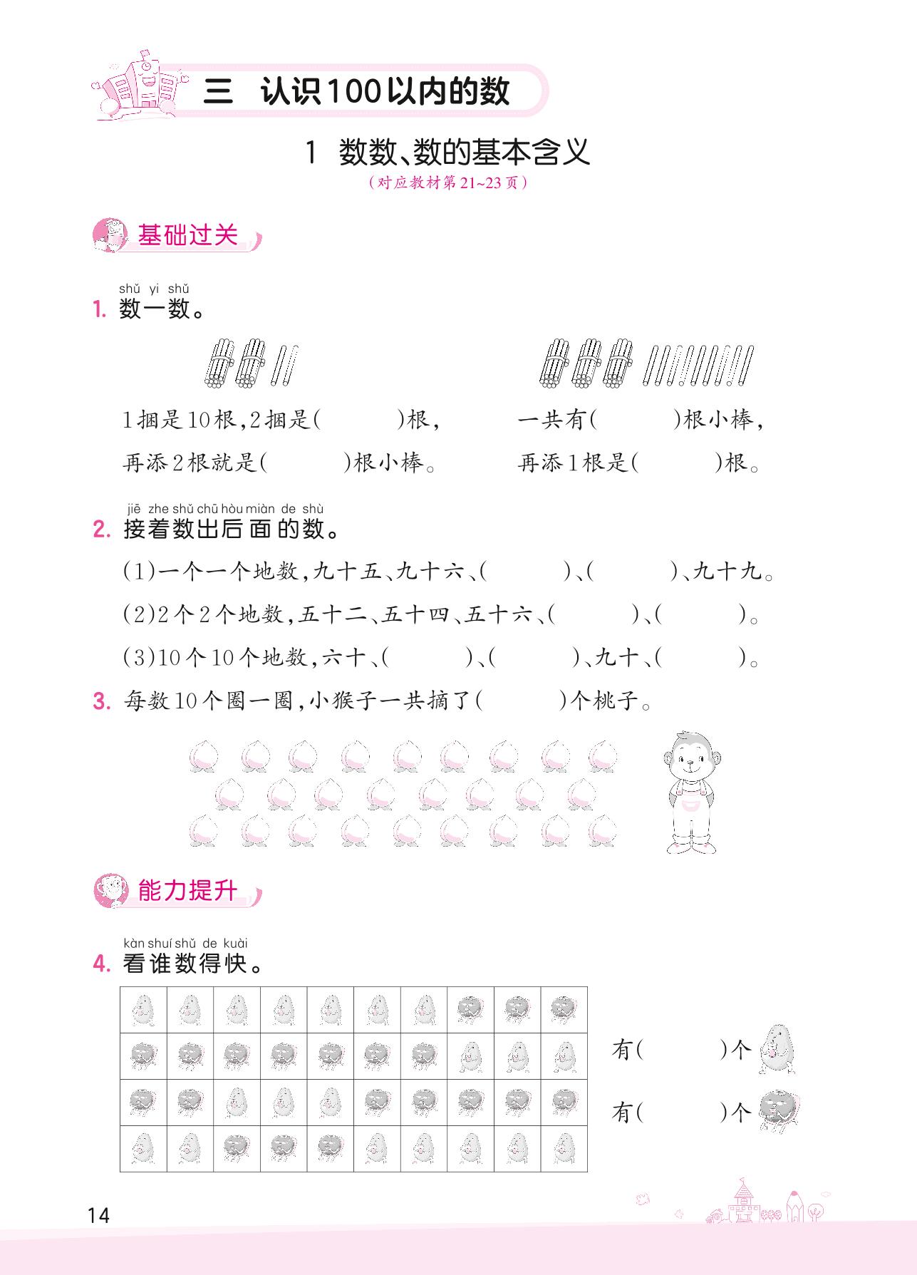 2022下册一年级数学苏教版 三 认识100以内的数——1 数数、数的基本含义