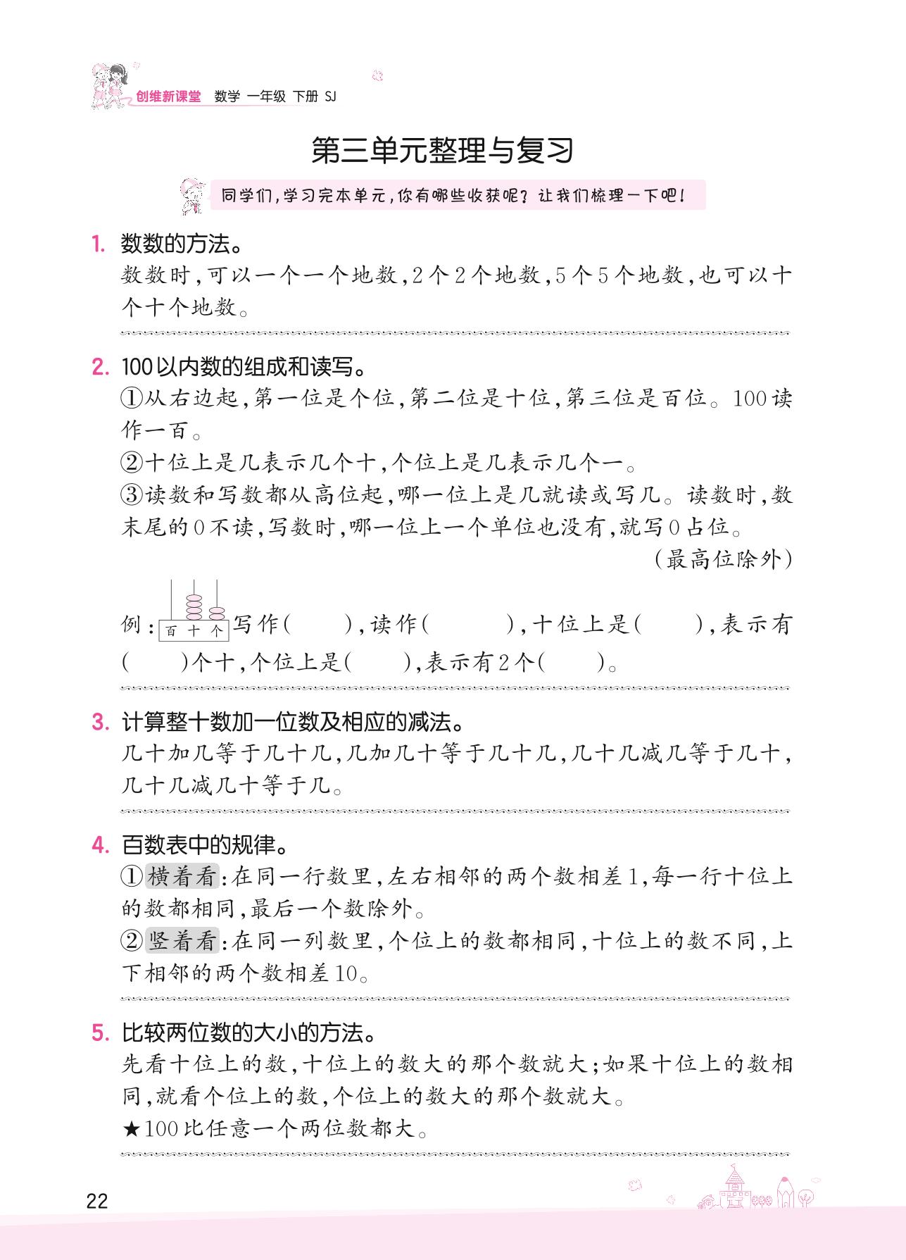 2022下册一年级数学苏教版 三 认识100以内的数——第三单元整理与复习