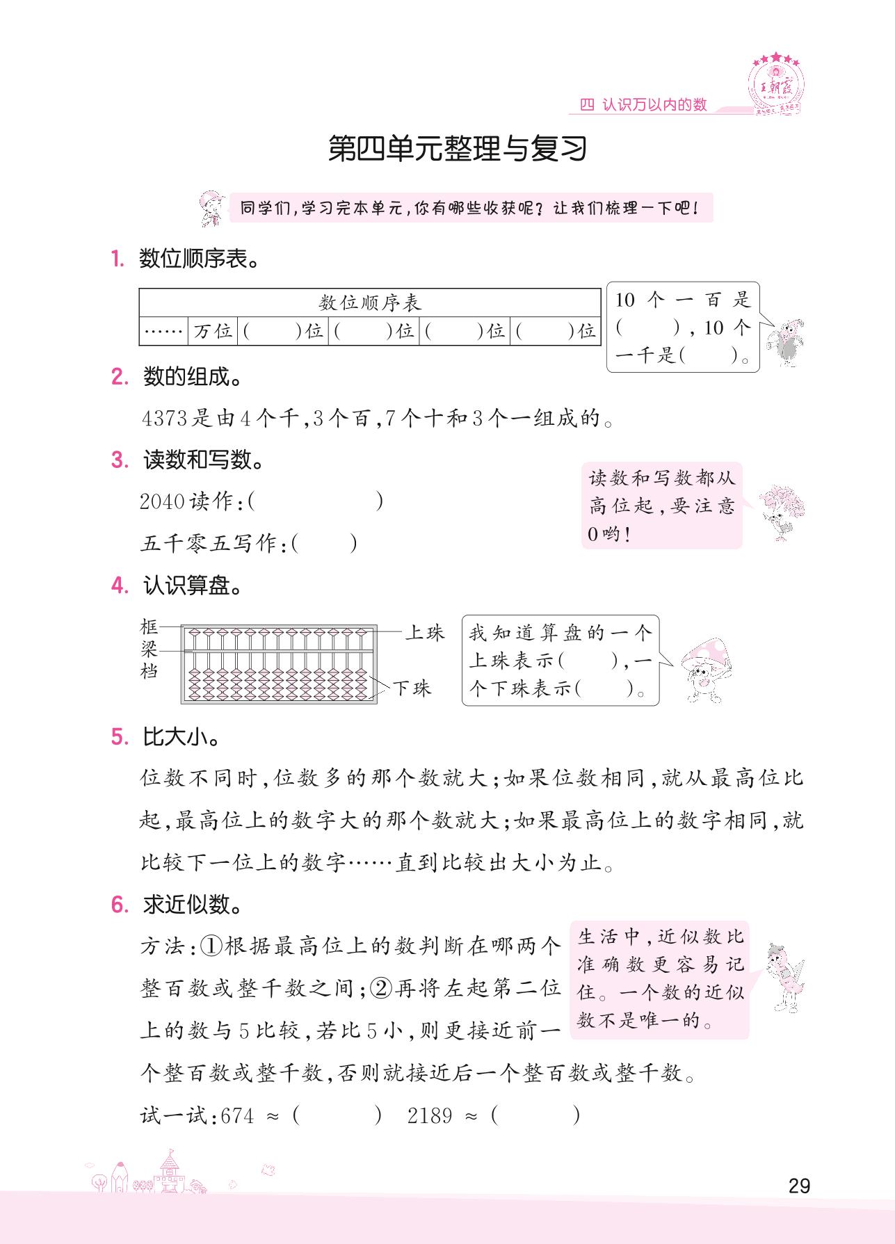 2022下册二年级数学苏教版 四 认识万以内的数——第四单元整理与复习
