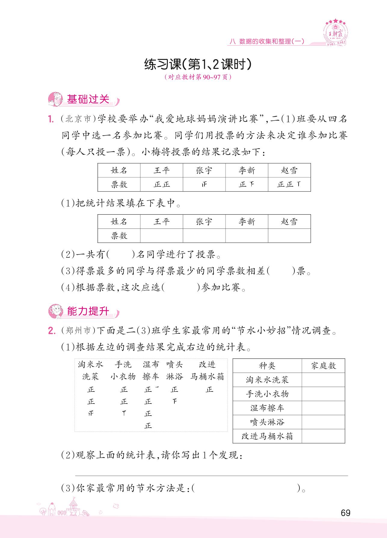 2022下册二年级数学苏教版 八 数据的收集和整理(一)——练习课(第1、2课时)