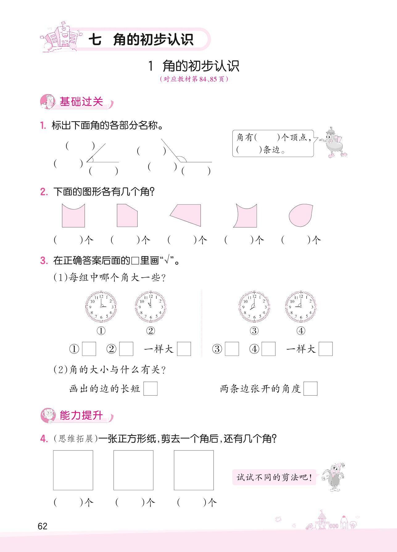 2022下册二年级数学苏教版 七 角的初步认识——1 角的初步认识