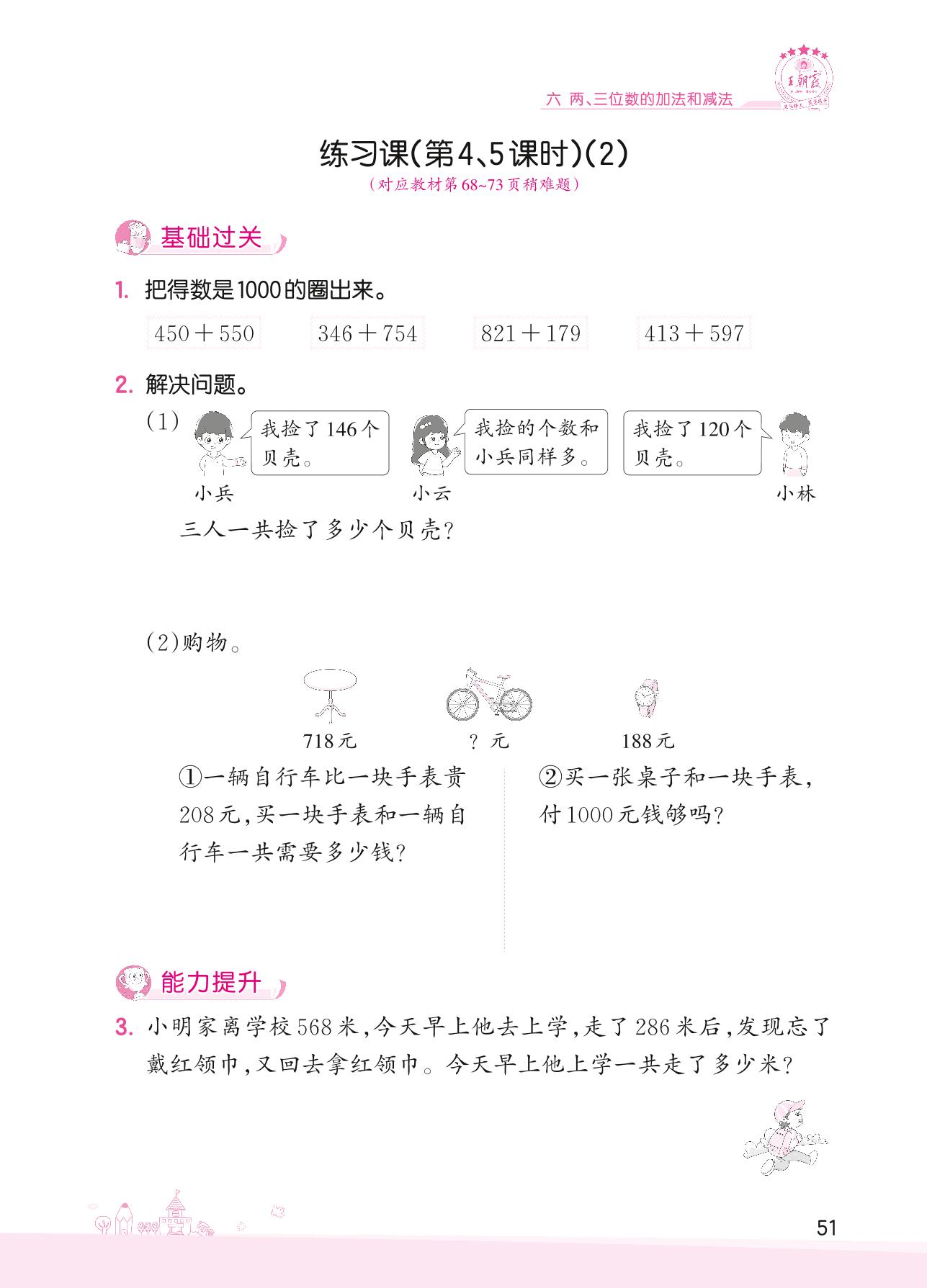 2022下册二年级数学苏教版 六 两、三位数的加法和减法——练习课(第4、5课时)(2)