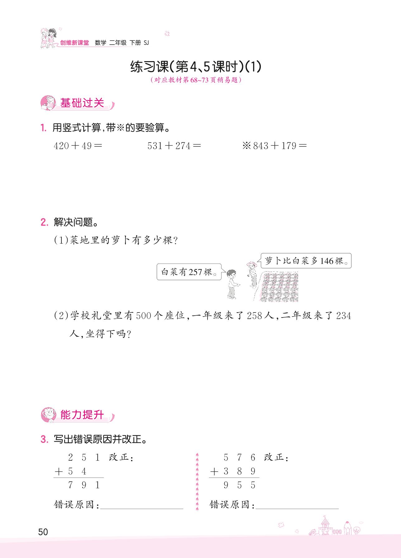 2022下册二年级数学苏教版 六 两、三位数的加法和减法——练习课(第4、5课时)(1)