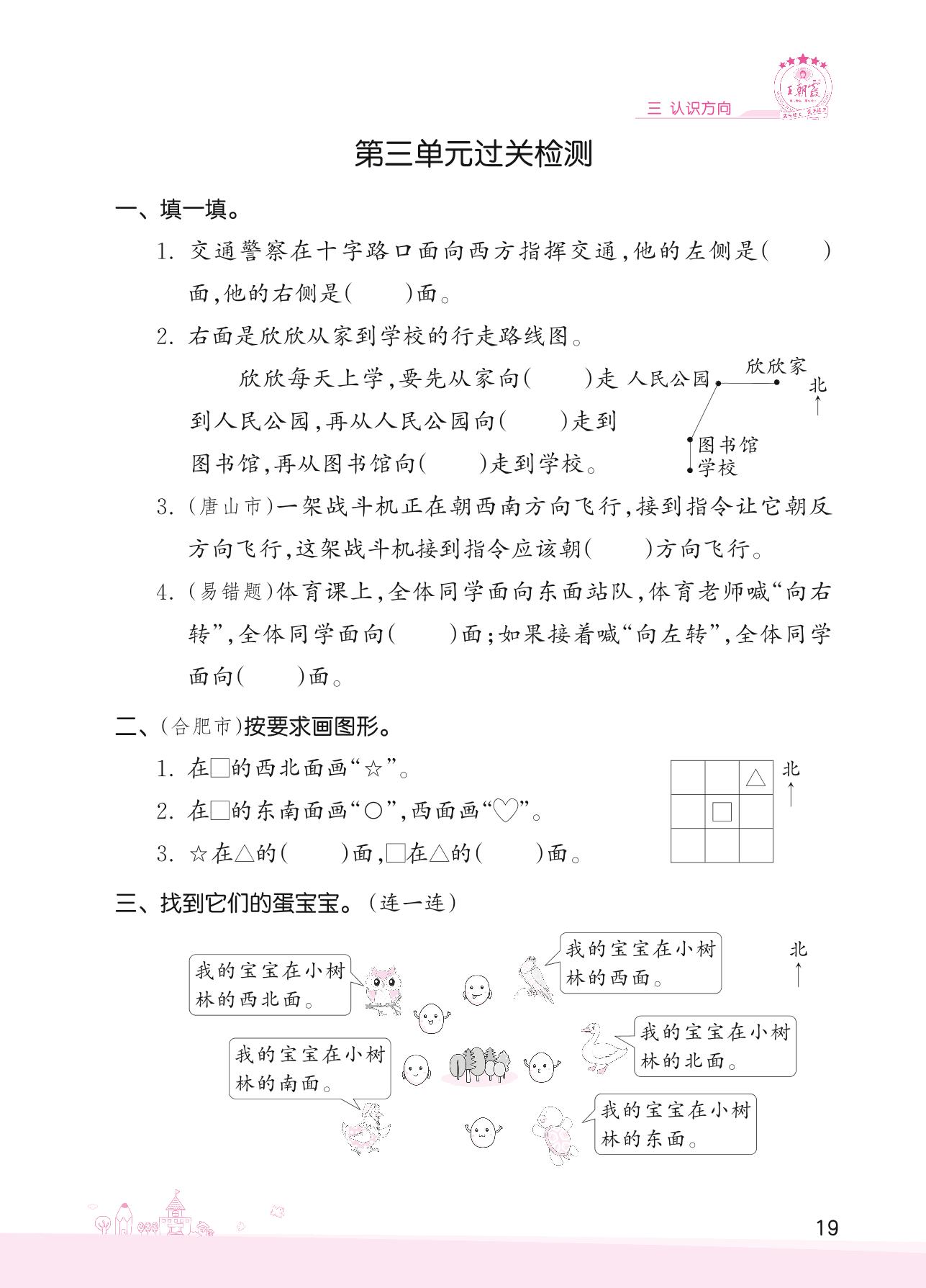 2022下册二年级数学苏教版 三 认识方向——第三单元过关检测