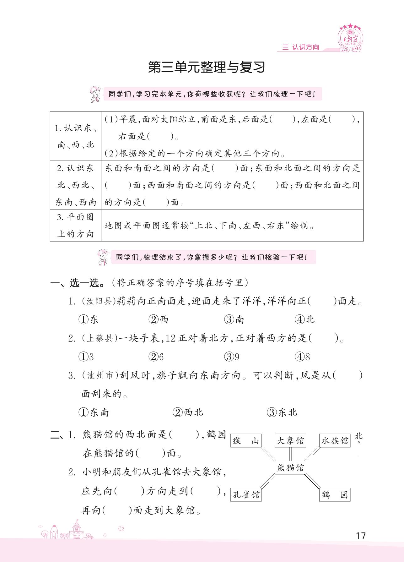 2022下册二年级数学苏教版 三 认识方向——第三单元整理与复习