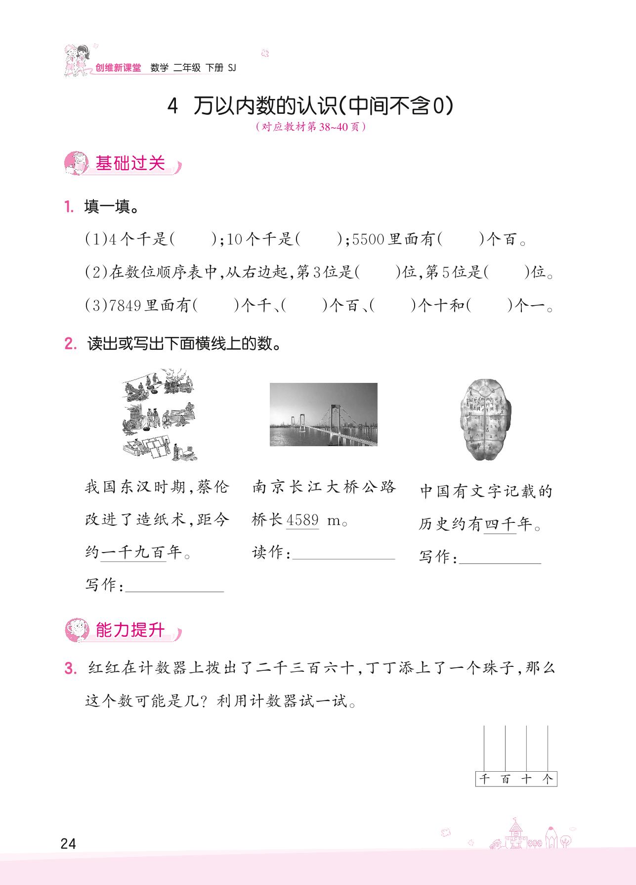 2022下册二年级数学苏教版 四 认识万以内的数——4 万以内数的认识(中间不含0)