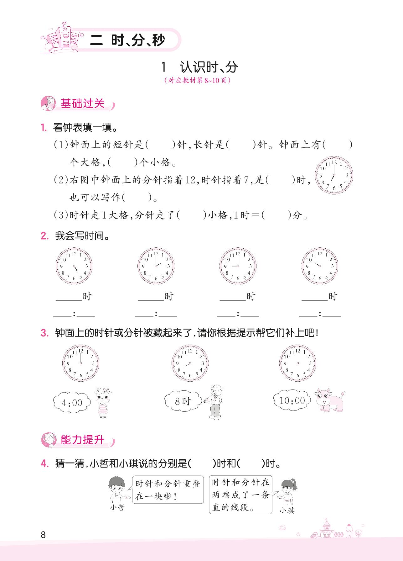 2022下册二年级数学苏教版 二 时、分、秒——1 认识时、分