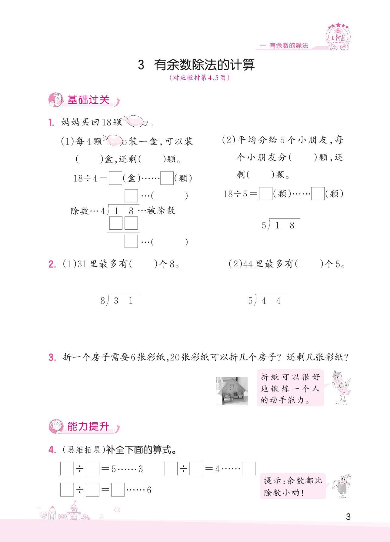2022下册二年级数学苏教版 一 有余数的除法——3 有余数除法的计算