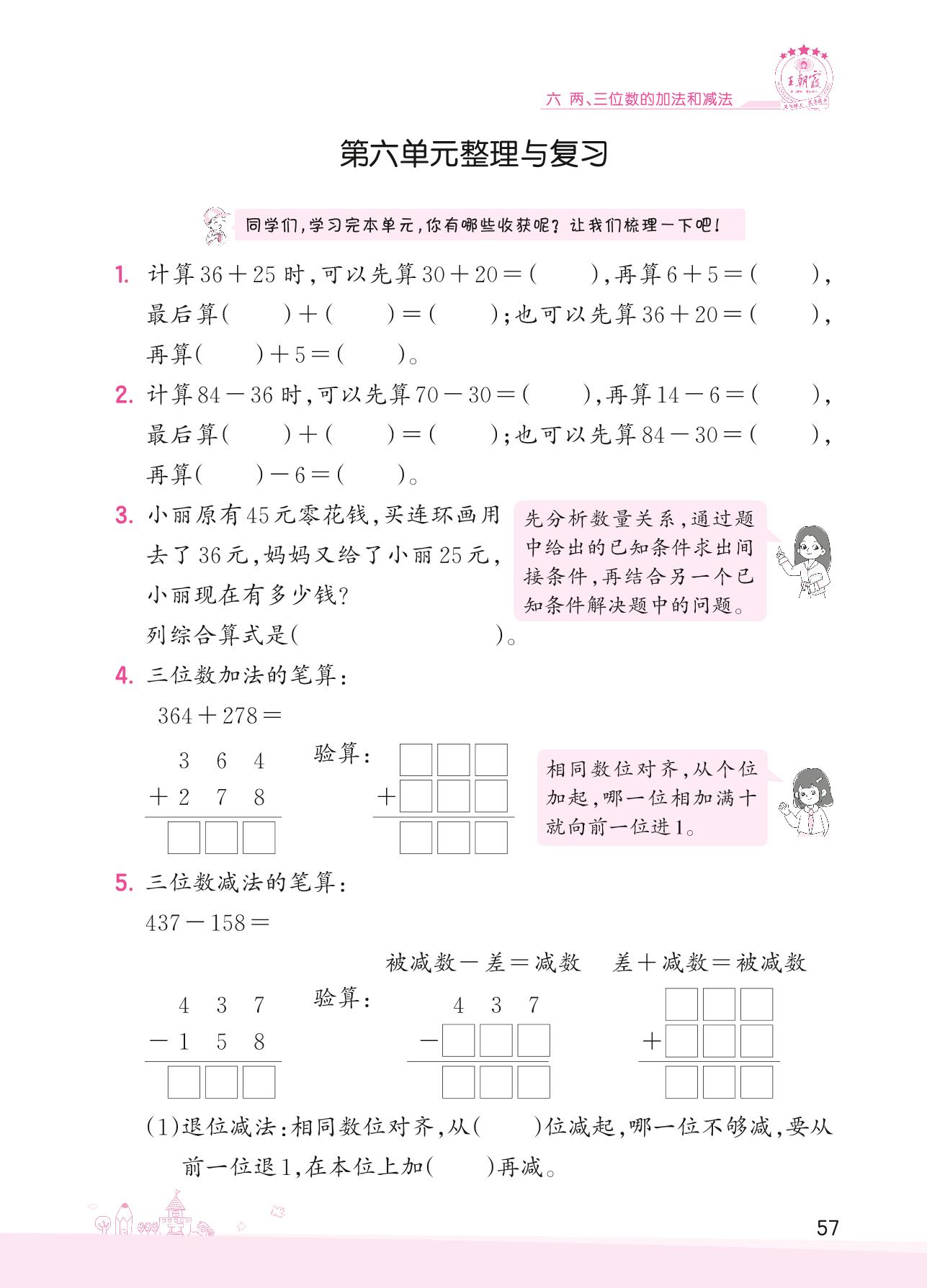 2022下册二年级数学苏教版 六 两、三位数的加法和减法——第六单元整理与复习