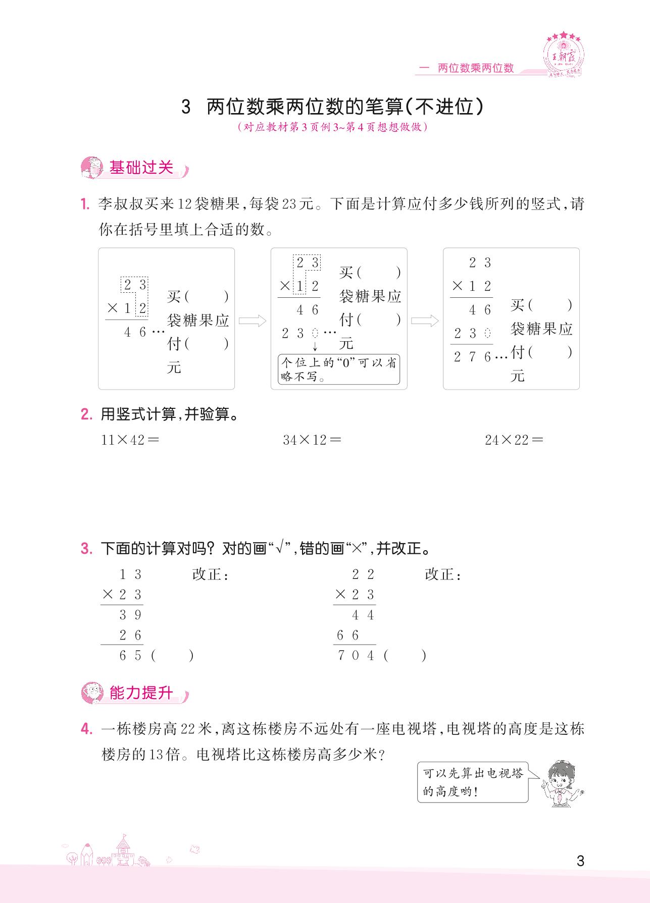2022下册三年级数学苏教版 一 两位数乘两位数——3 两位数乘两位数的笔算(不进位)