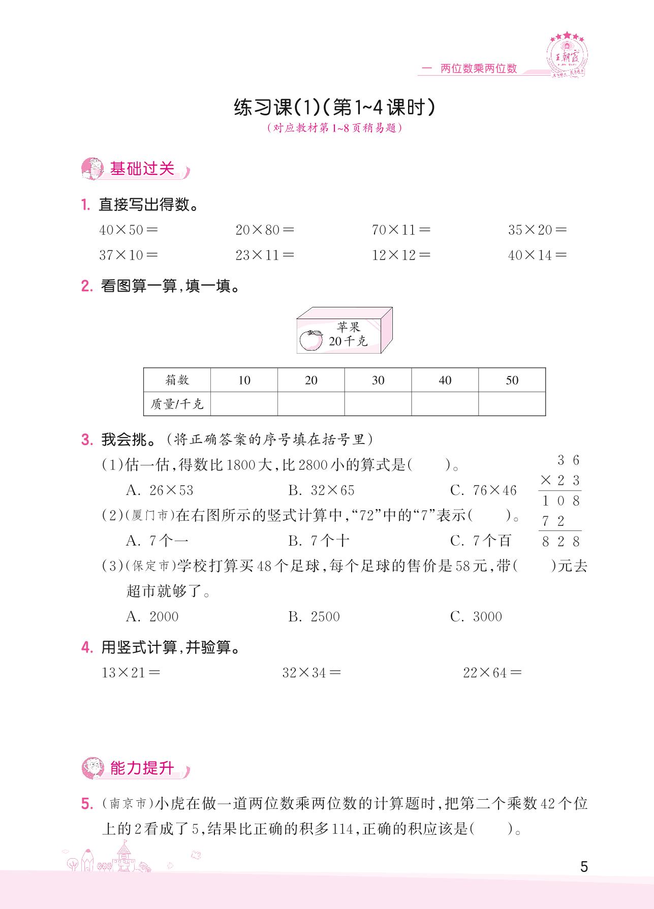 2022下册三年级数学苏教版 一 两位数乘两位数——练习课(1)(第1~4课时)
