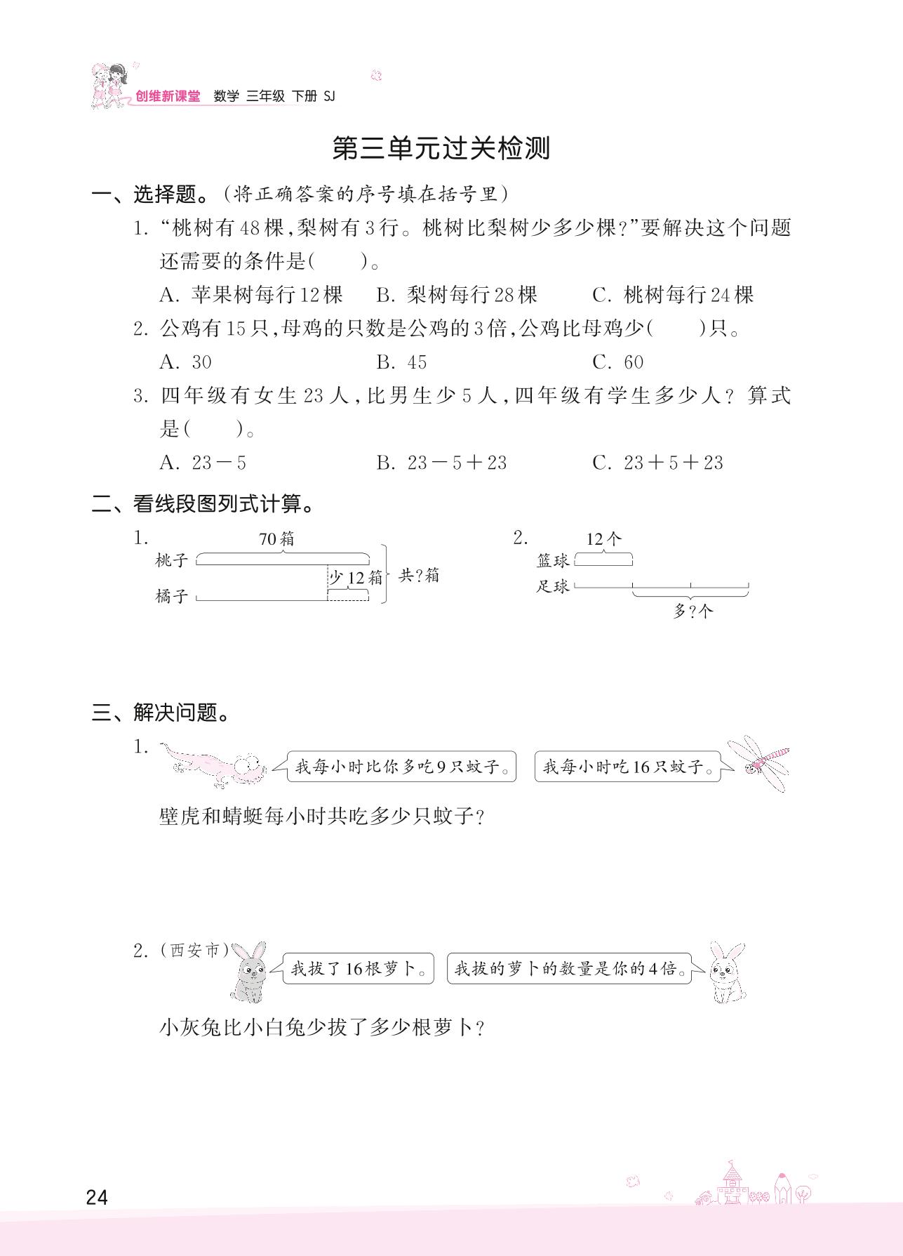 2022下册三年级数学苏教版 三 解决问题的策略——第三单元过关检测