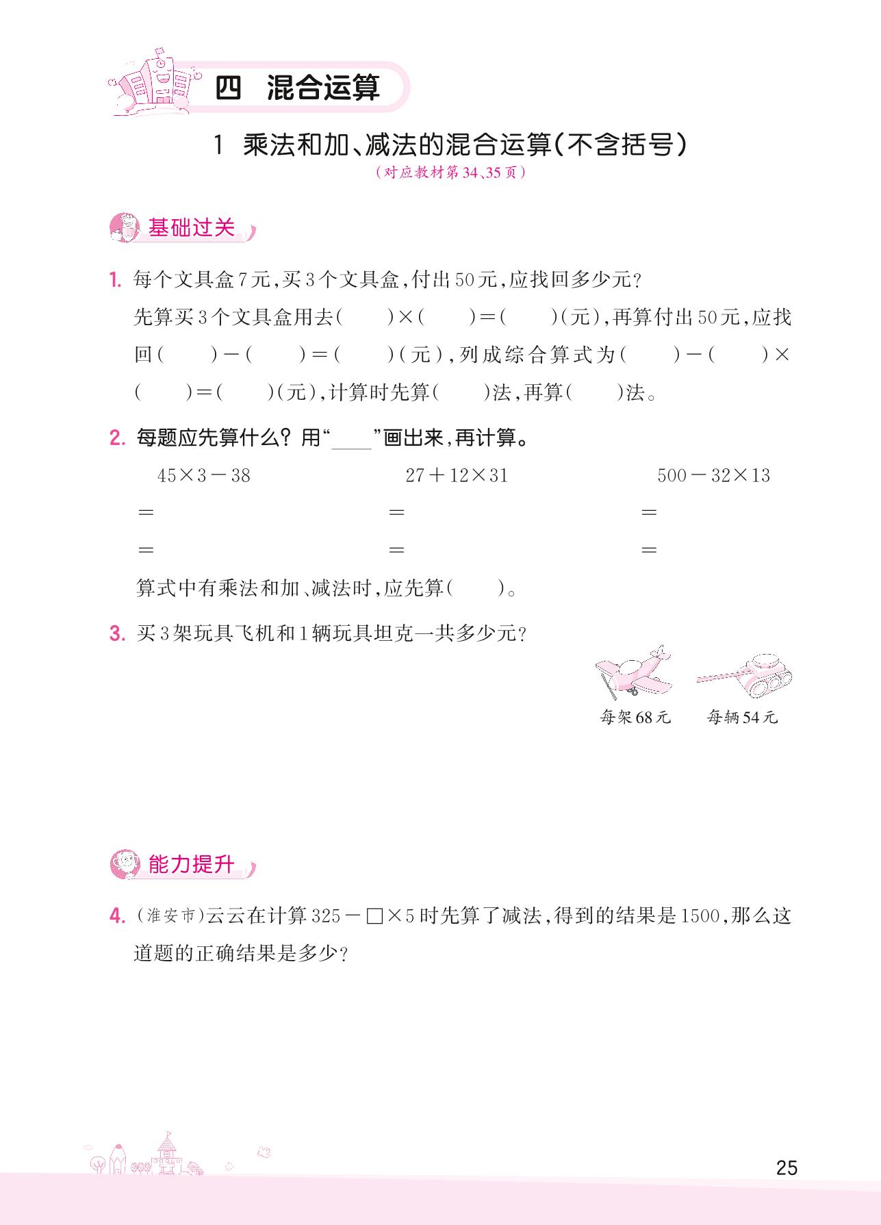 2022下册三年级数学苏教版 四 混合运算——1 乘法和加、减法的混合运算(不含括号)