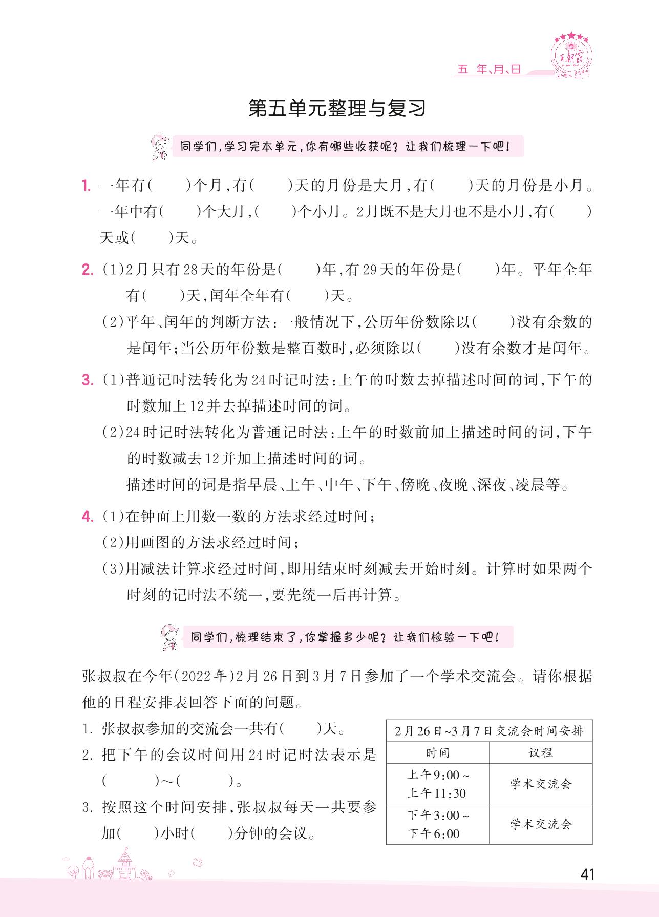2022下册三年级数学苏教版 五 年、月、日——第五单元整理与复习