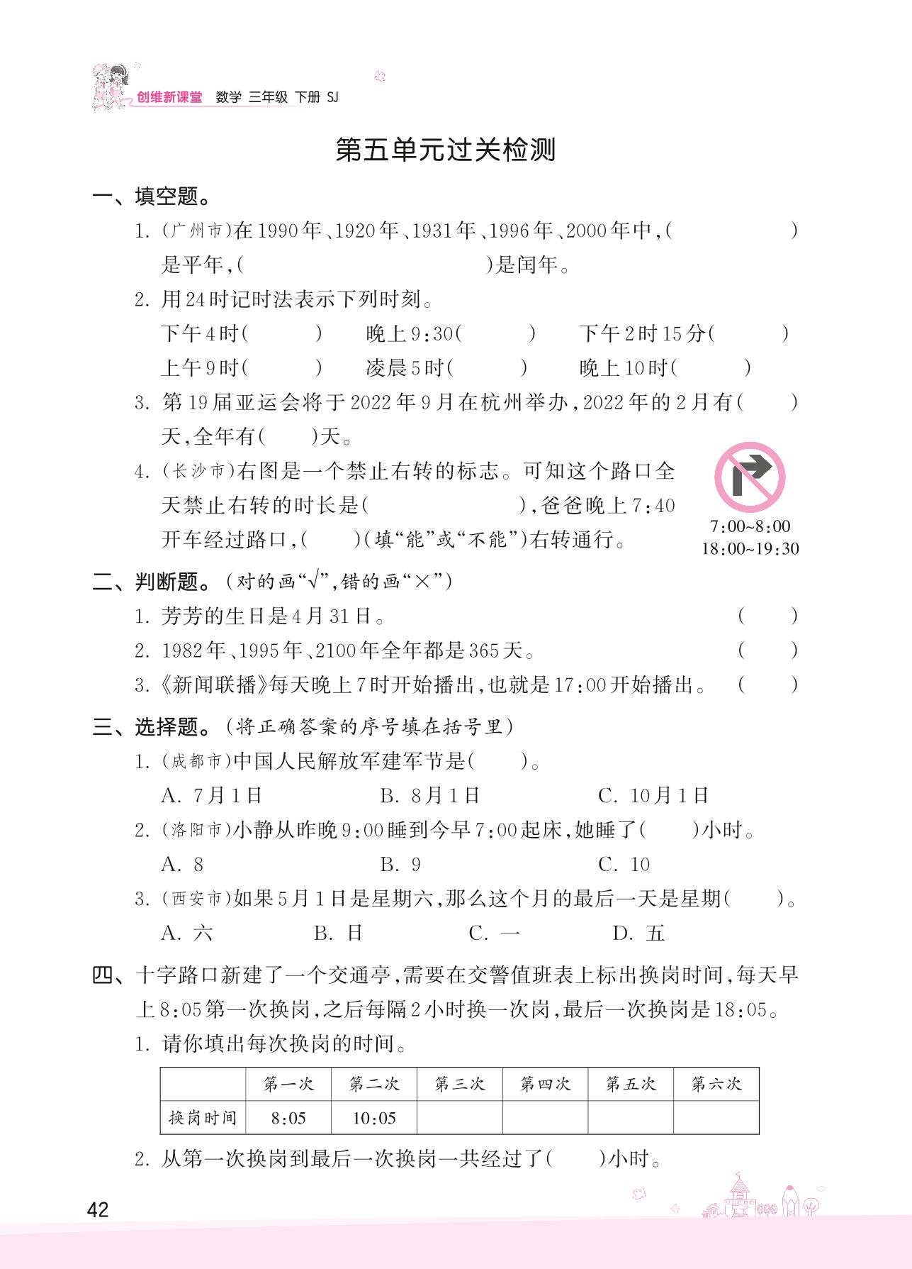 2022下册三年级数学苏教版 五 年、月、日——第五单元过关检测