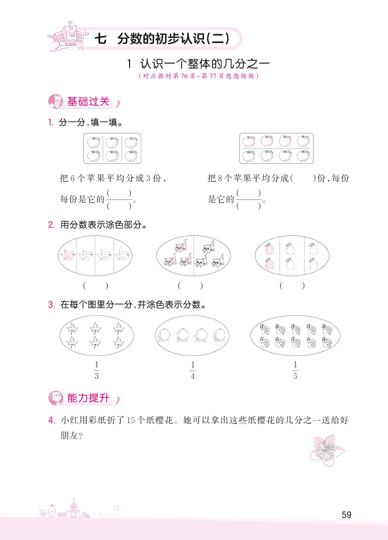 2022下册三年级数学苏教版 七 分数的初步认识(二)——1 认识一个整体的几分之一