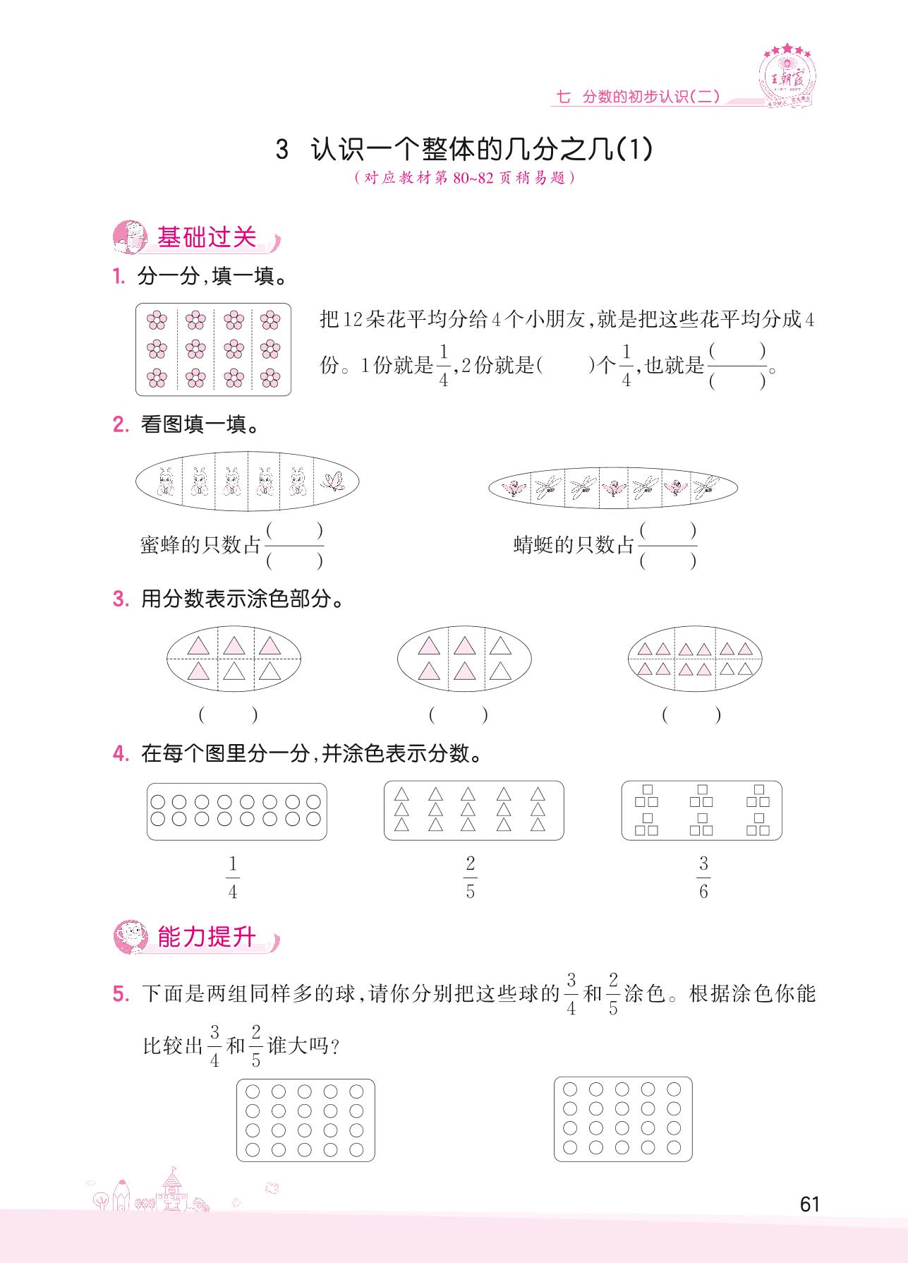 2022下册三年级数学苏教版 七 分数的初步认识(二)——3 认识一个整体的几分之几(1)