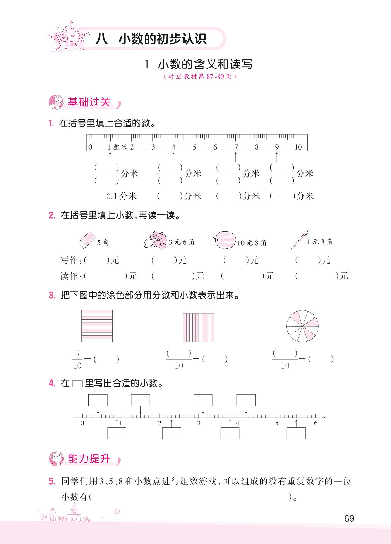 2022下册三年级数学苏教版 八 小数的初步认识——1 小数的含义和读写